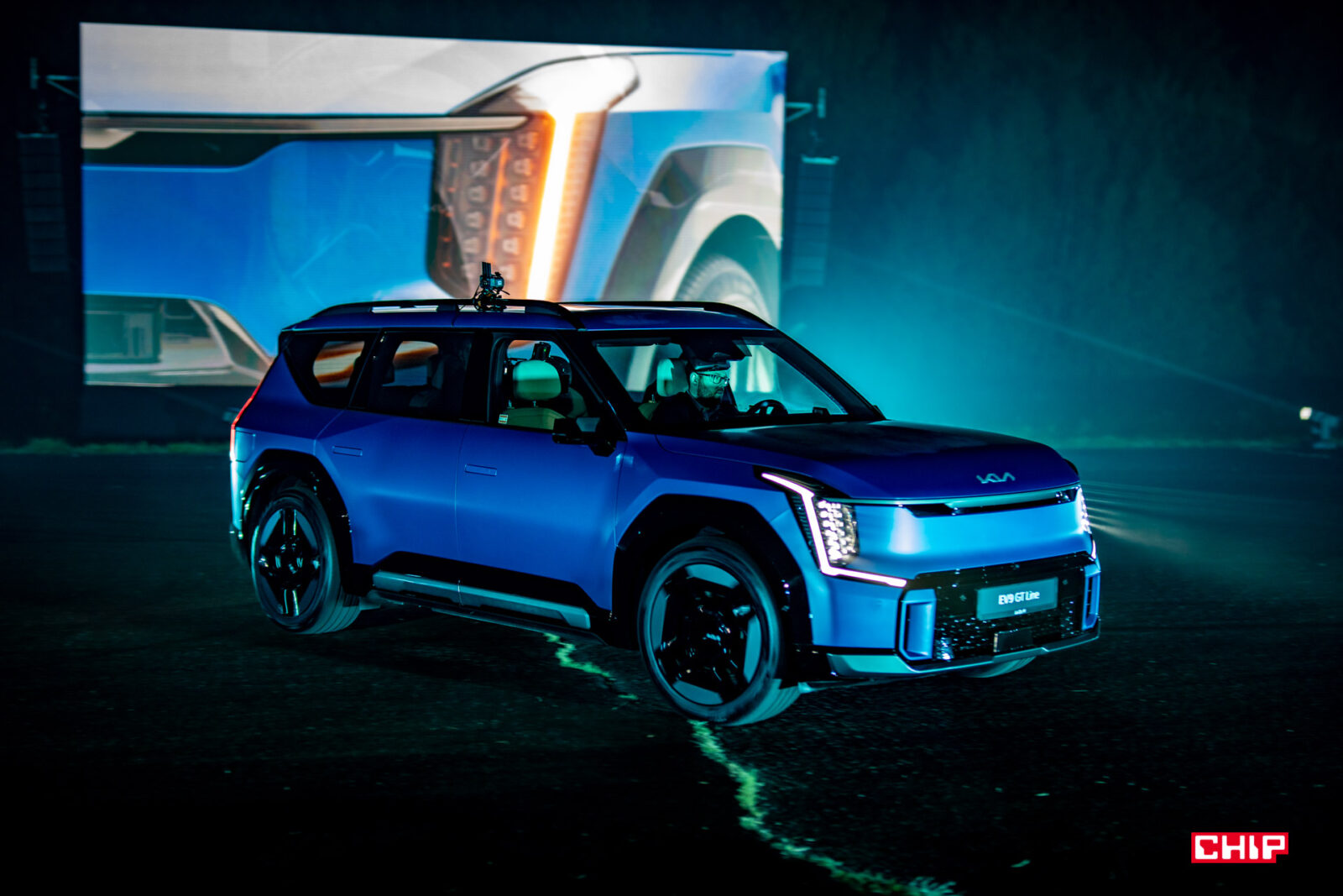 Zacznijmy od danych technicznych. Kia EV9 będzie dostępna w wersji z napędem na tylną oś i mocą 203 KM lub na cztery koła z mocą 384 KM. W obu znajdziemy taki sam akumulator o pojemności 99,8 kWh ładowany z mocą aż 240 kW, ale do tego zagadnienia jeszcze wrócimy.