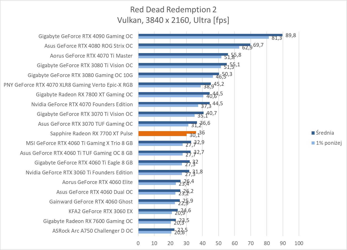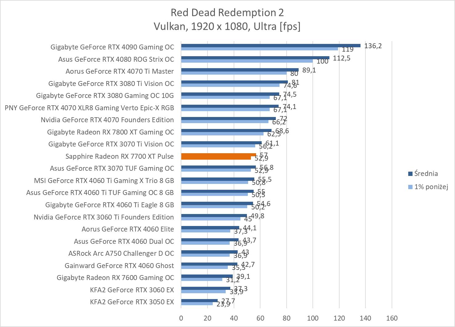Wydajność jest bardzo dobra i jedynie w RDR2 nie zanotowałem średnio 60 fps, choć jest blisko tej wartości. Karta bez wątpienia wypada też wydajniej niż RTX 4060 Ti.