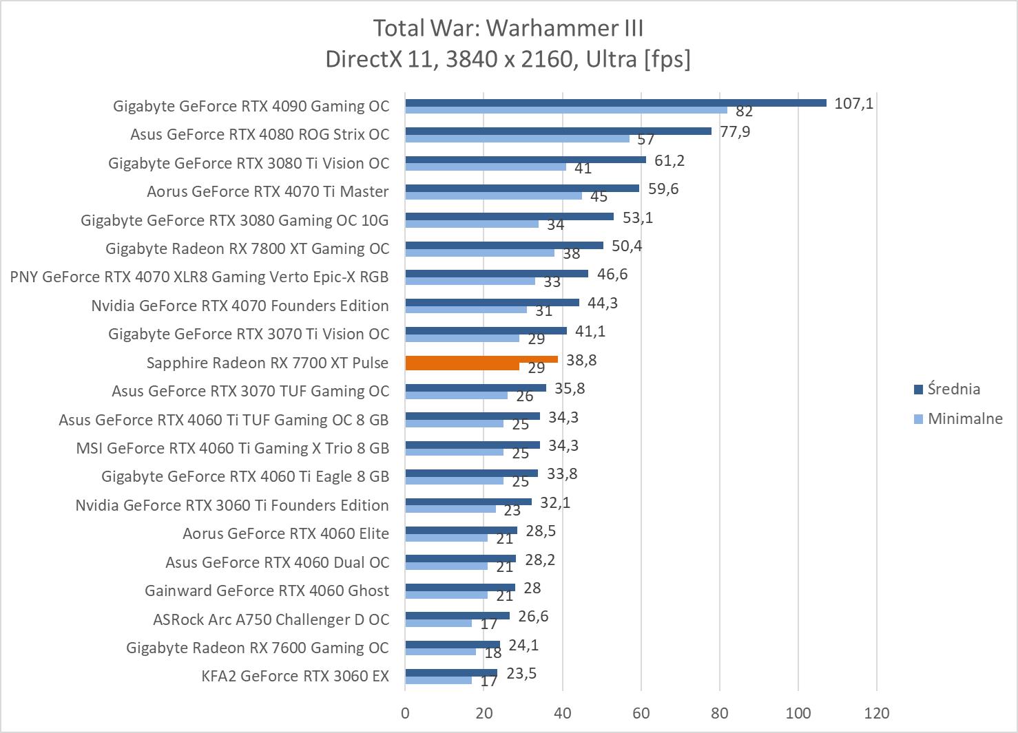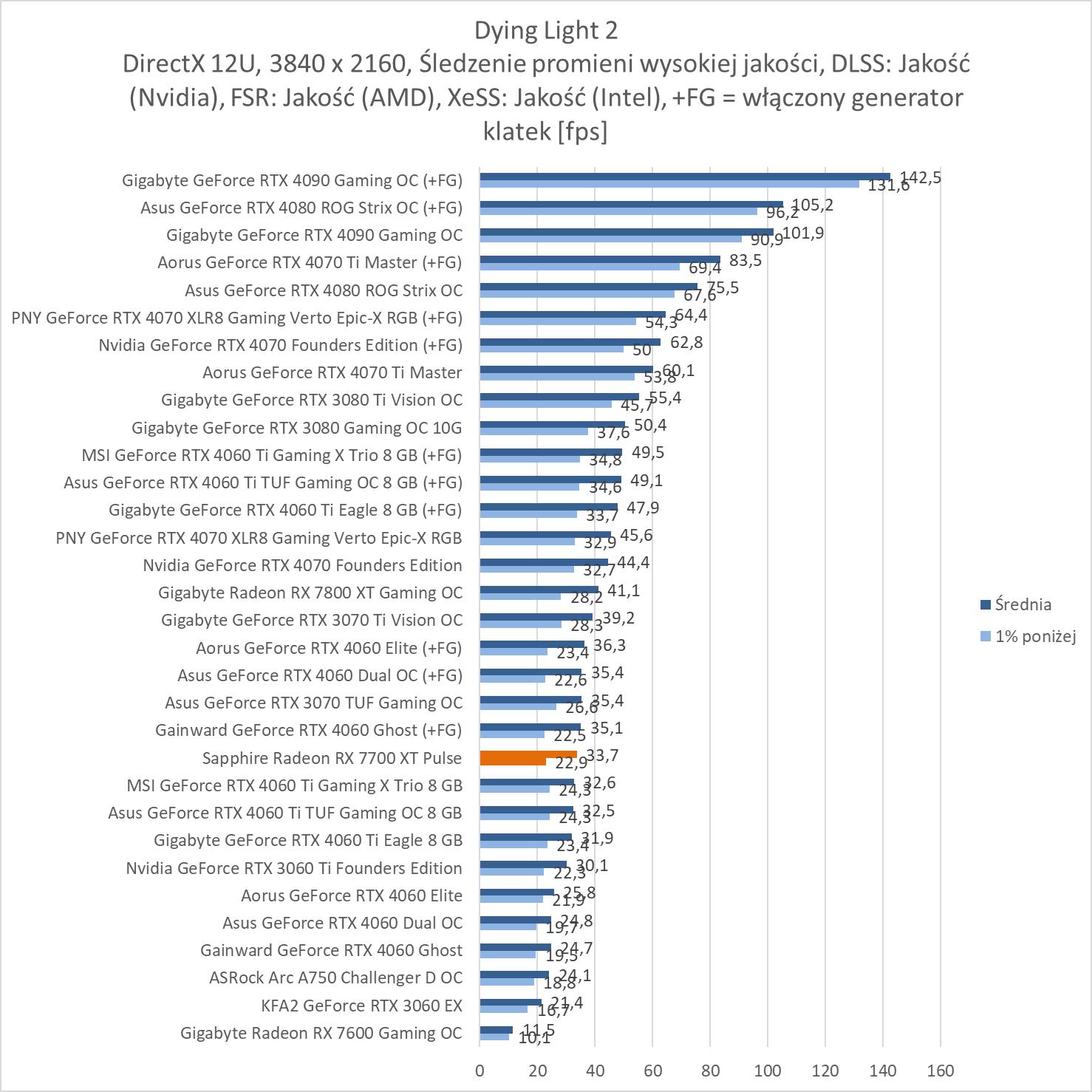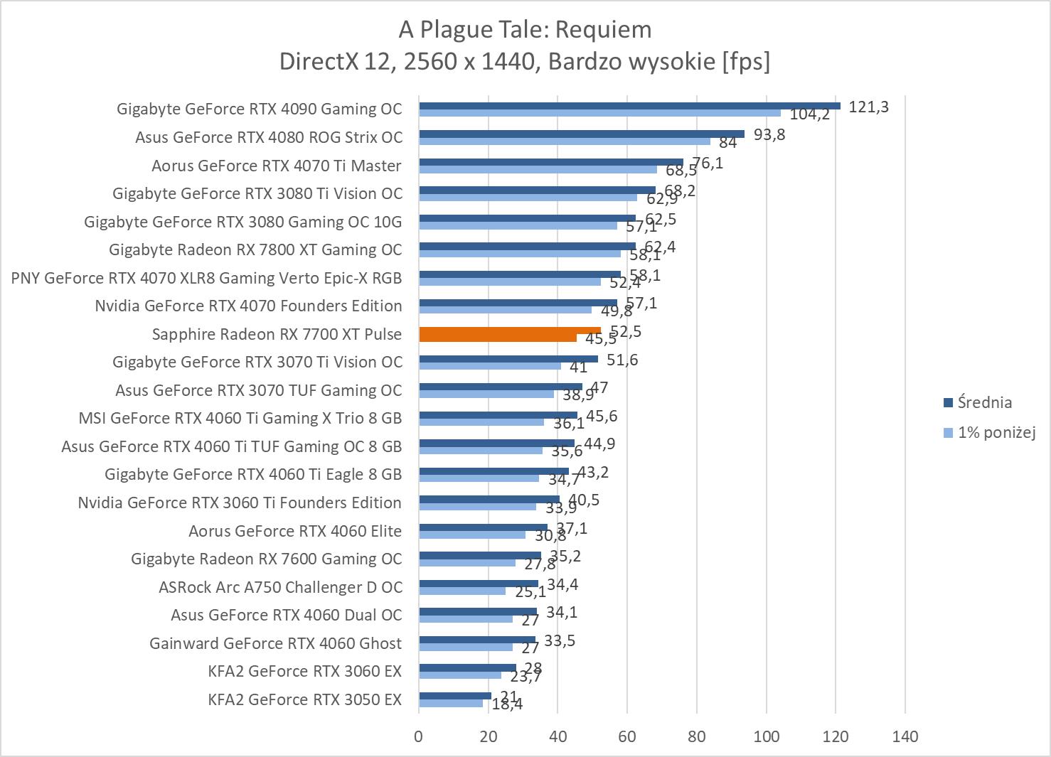 Do ostatniej rozdzielczości przyda się znacznie mocniejsza karta – 7700 XT nie pozwala na uzyskanie 60 fps w prawie wszystkich grach.
