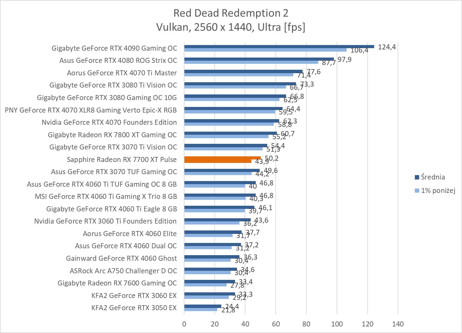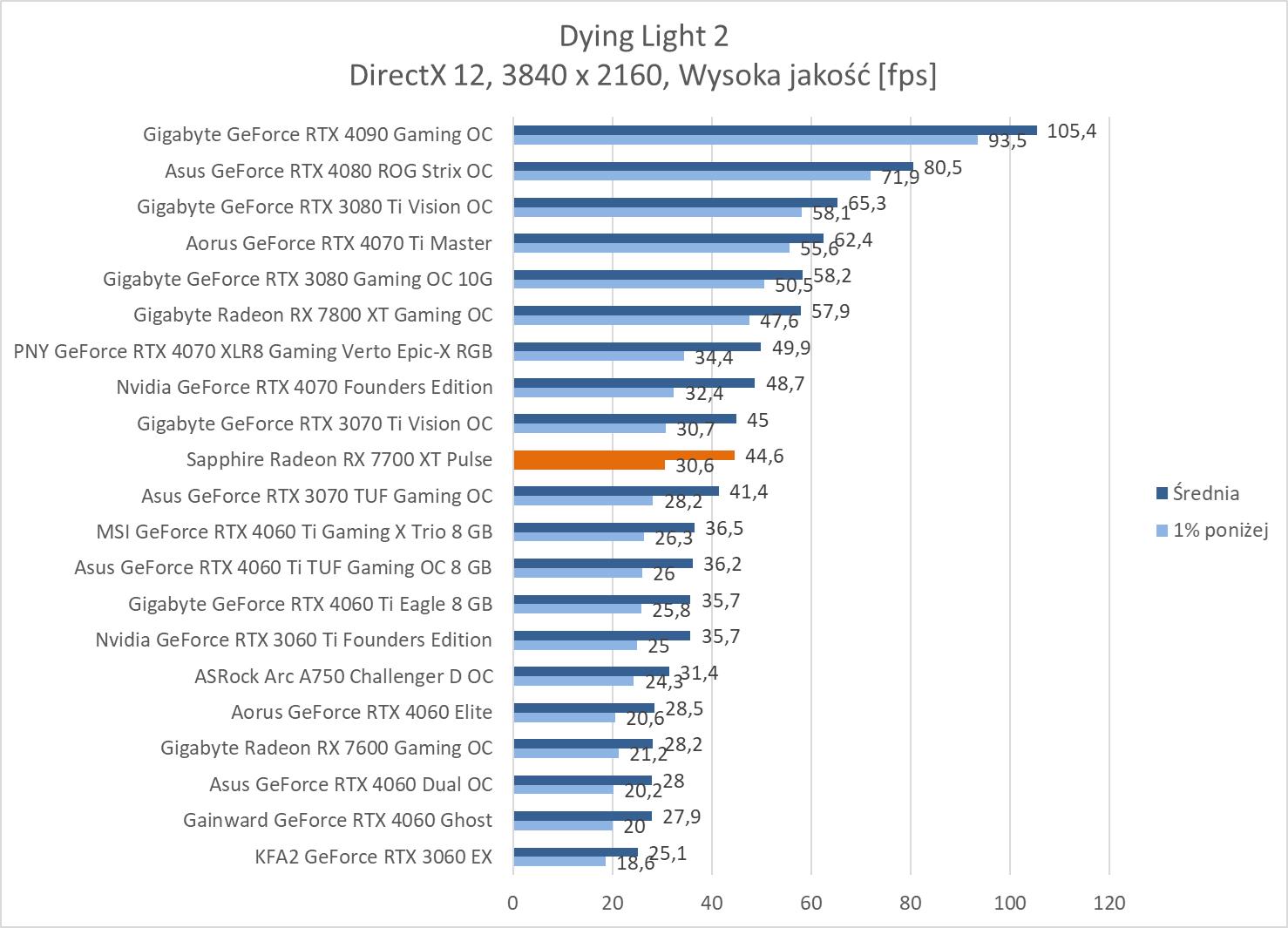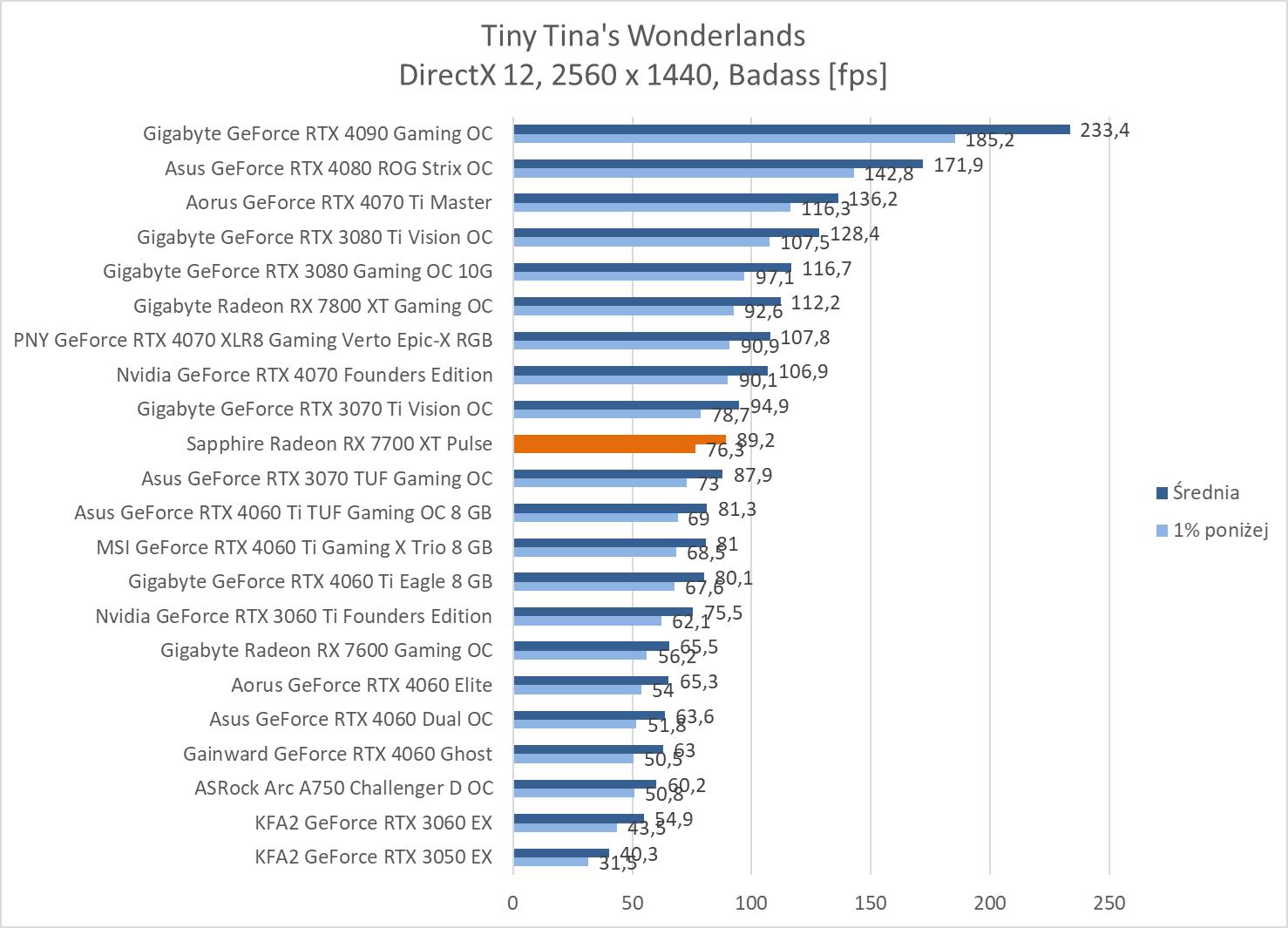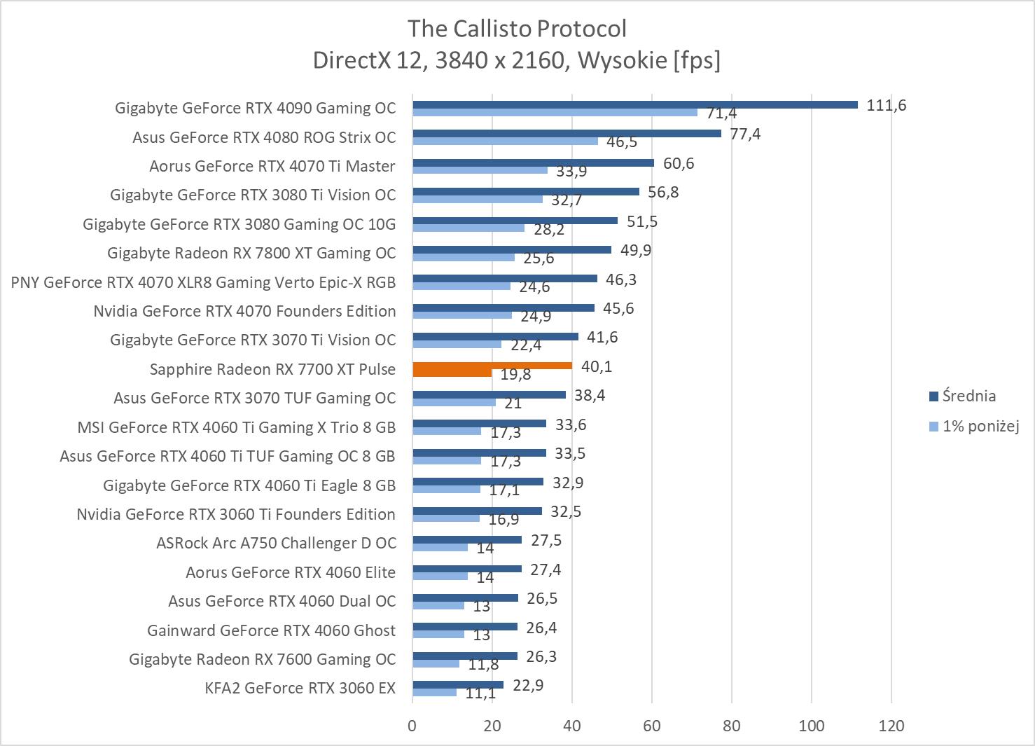 Do ostatniej rozdzielczości przyda się znacznie mocniejsza karta – 7700 XT nie pozwala na uzyskanie 60 fps w prawie wszystkich grach.