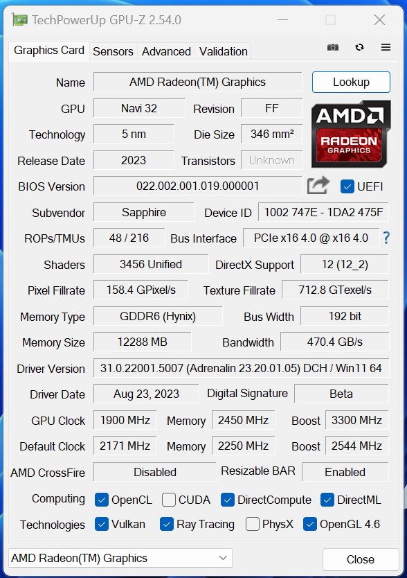 Specyfikacja Sapphire Radeon RX 7700 XT Pulse
