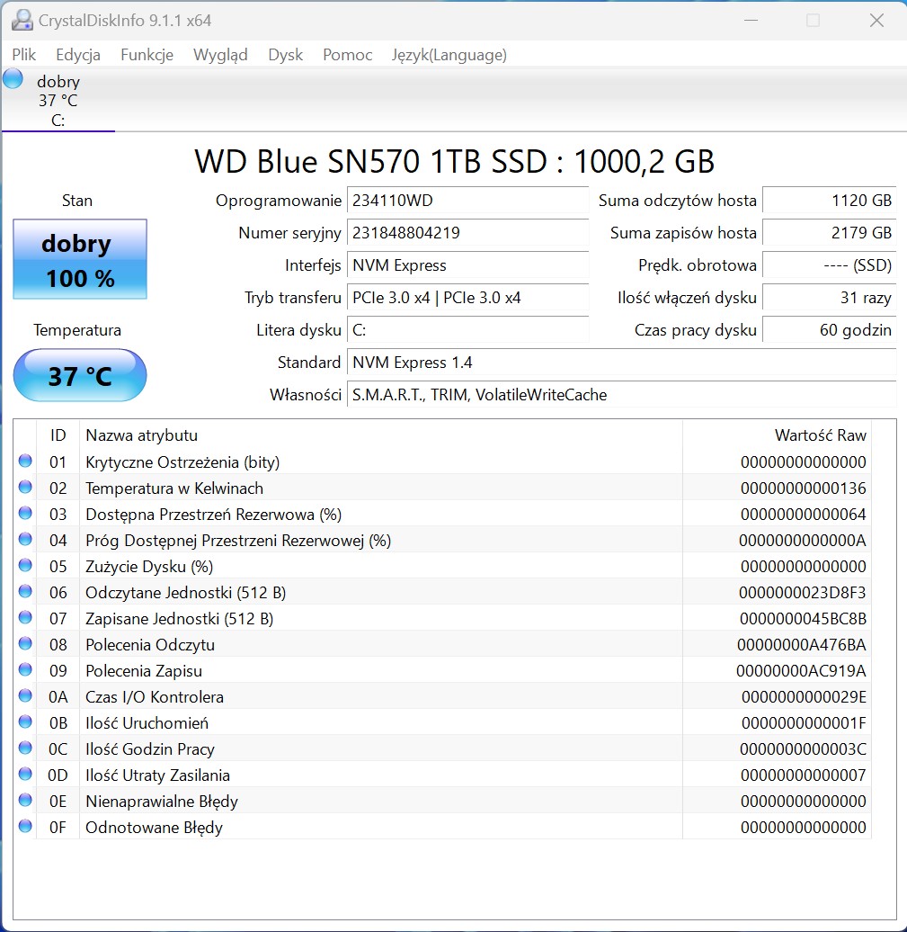 Dysk to WD Blue SN570 o pojemności 1 TB. Jest to konstrukcja na PCIe 3.0 x4, która oferuje dobre transfery (odczyt: 3500 MB/s, zapis 3000 MB/s). Oczywiście mógłby być dysk PCIe 4.0, ale przy niższej cenie nie ma takiej potrzeby. Zastosowana konstrukcja zapewni bardzo dobre transfery, szybkie wczytywanie się gier i płynne działanie systemu. Tutaj na pewno będziecie z niego również zadowoleni.