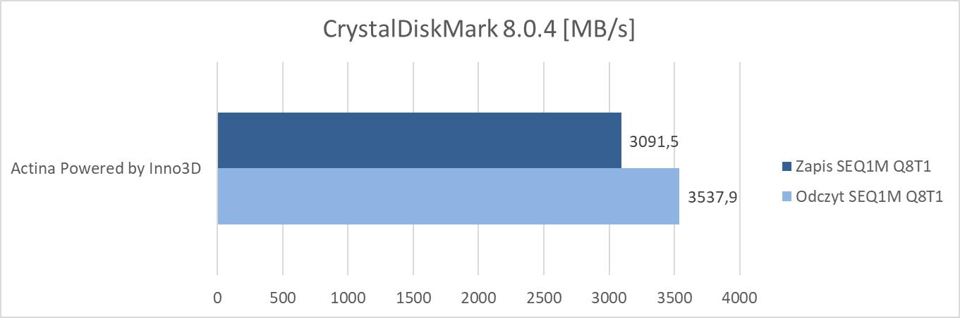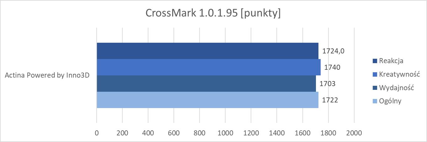 Dysk oferuje bardzo dobrą wydajność, zgodną z oczekiwaniami. Pozostałe podzespoły niczym nie zaskakują. Wyniki nie są zbyt wysokie, ale odpowiednie dla zastosowanych części. Całość sprawdzi się więc dobrze w codziennym użytkowaniu, przeglądaniu internetu, obsłudze pakietu biurowego itp..