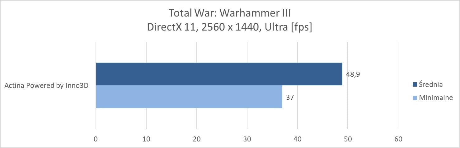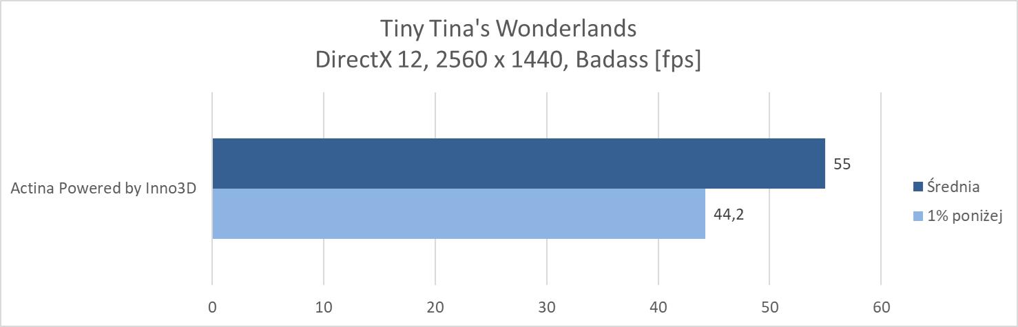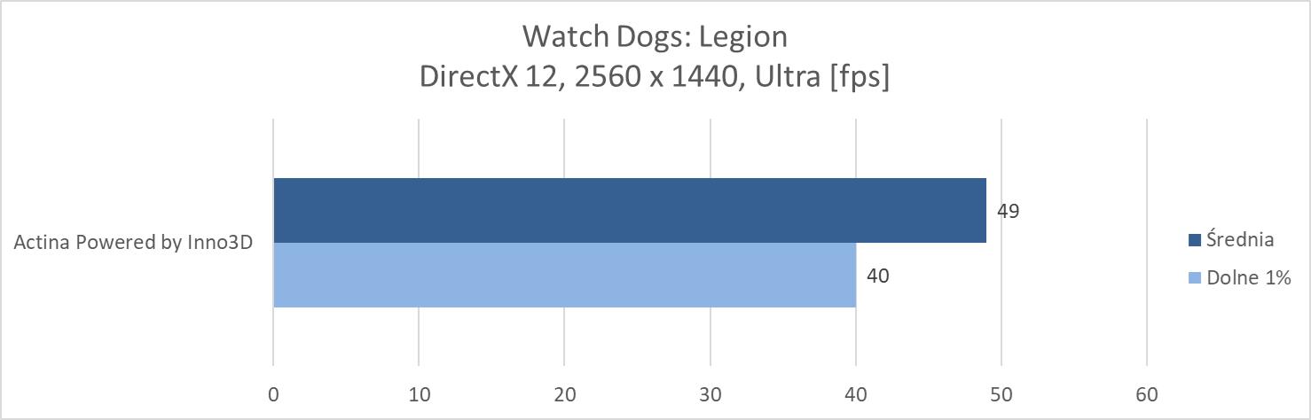 W kolejnej rozdzielczości jest już tylko jedna gra z powyżej 60 fps. Nie ma jednak co się dziwić – RTX 3060 to grafika przeznaczona do gamingu w Full HD.