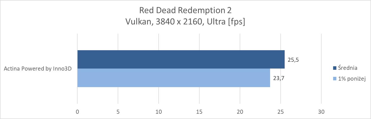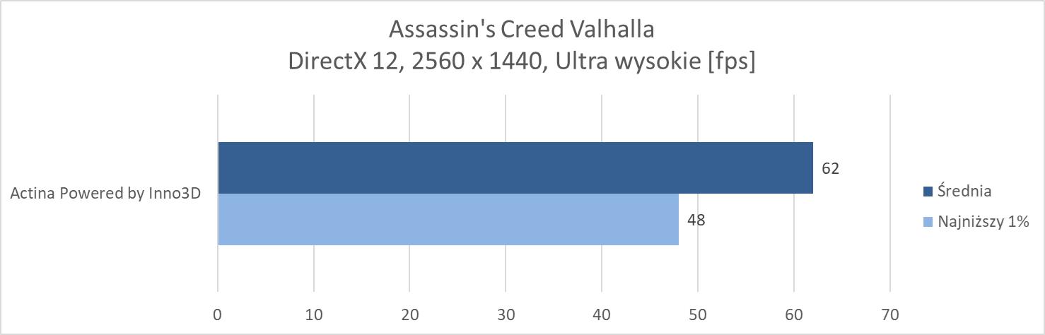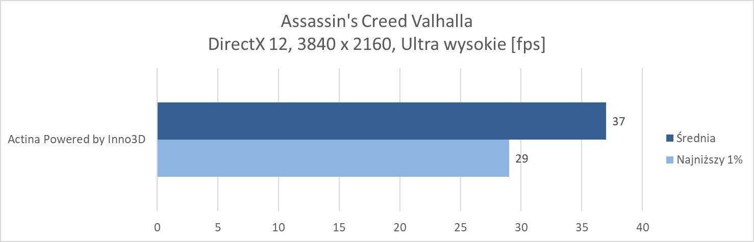 Actina Powered by Inno3D w testowanej konfiguracji kupicie za ok. 4230 zł (pod linkiem znajdziecie zestaw z inną płytą główną, ale to nie ma pływu na wydajność zestawu). Cena jest całkowicie odpowiednia, jak na złożony zestaw i nie jest wcale dużo większa od osobnych podzespołów. Otrzymujemy za to w pełni działający, przetestowany i sprawdzony zestaw, który dobrze sprawdzi się w gamingu w 1920 x 1080. Całość jest dobrze złożona i zabezpieczona na czas wysyłki. W razie problemów mamy też pełne wsparcie czy gwarancję udzielaną na okres 3 lat. Duży plus za brak plomb gwarancyjnych, co pozwala na zmiany w konfiguracji.