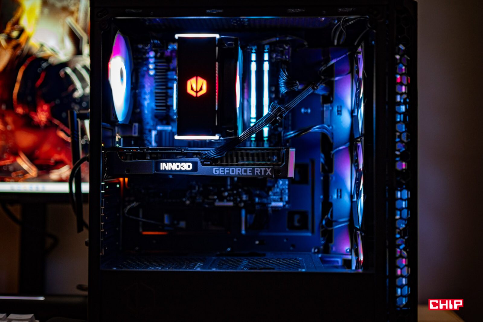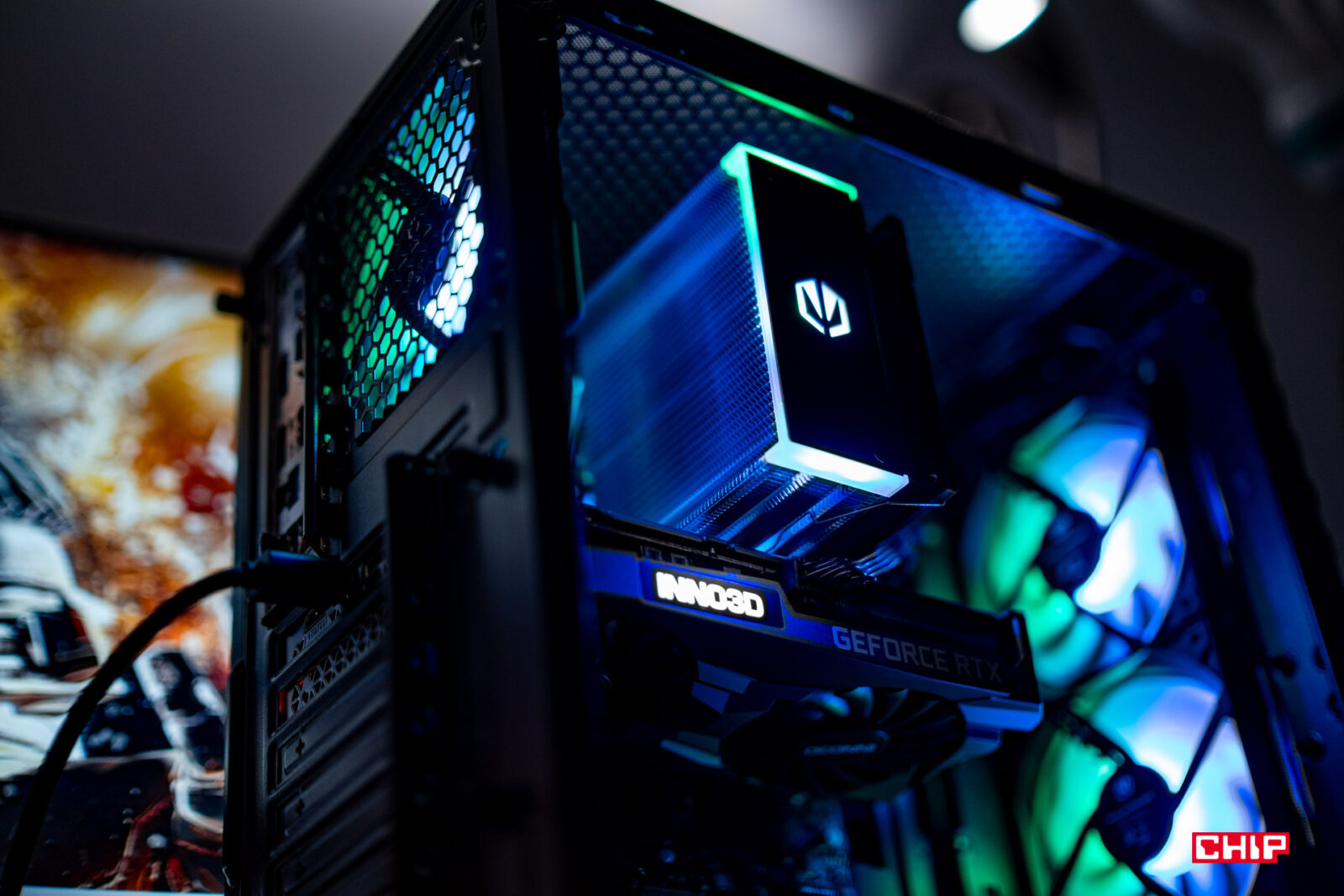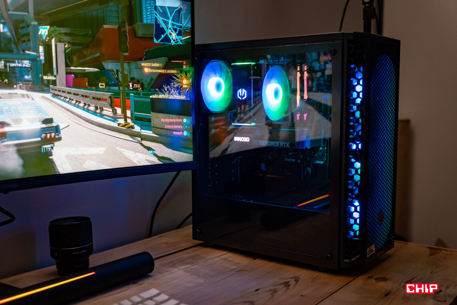Komputer przeznaczony jest dla graczy, co potwierdza współpraca z zespołami esportowymi. Testy potwierdziły, że dobrze sprawdzi się w rozdzielczości 1920 x 1080 px, ale przy wyższych już nie daje rady. Tutaj nie ma jednak zaskoczenia – RTX 3060 to karta stworzona do grania właśnie w najniższej rozdzielczości. W rasteryzacji pojawią się gry, gdzie trzeba będzie odpalić DLSS lub obniżyć detale, przy ray tarcingu koniecznie musicie włączyć DLSS. Trochę szkoda tutaj, że nie ma RTX 4060 obsługującego DLSS 3, w tym generator klatek, ale z pewnością taka karta podniosła by cenę całości. Natomiast macie cały czas do dyspozycji DLSS 2 z różnymi opcjami, które podbiją wydajność w grach. Bez wątpienia jednak jeśli celujecie w gaming w 1920 x 1080 to testowana konstrukcja dobrze się sprawdzi, w szczególności w swojej cenie.