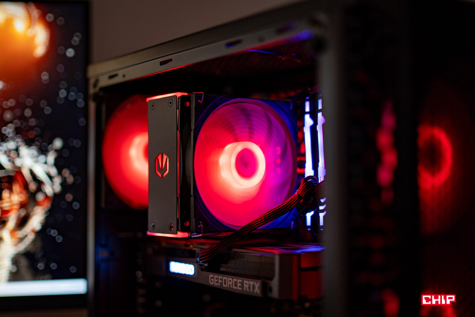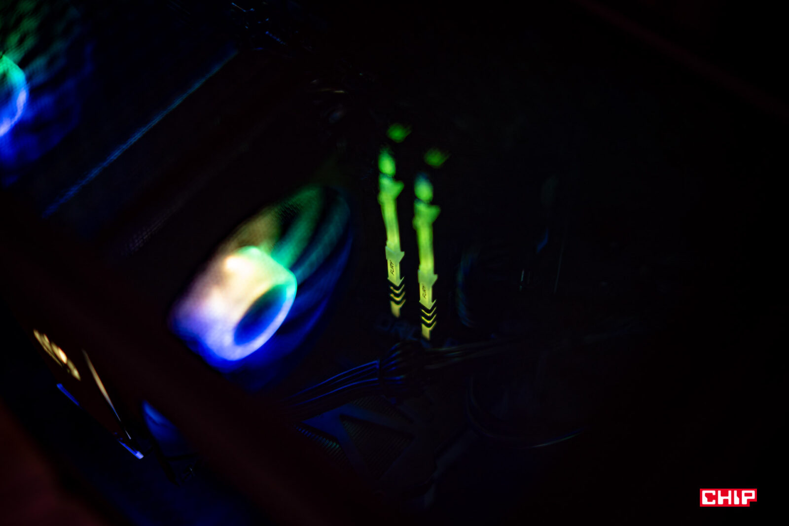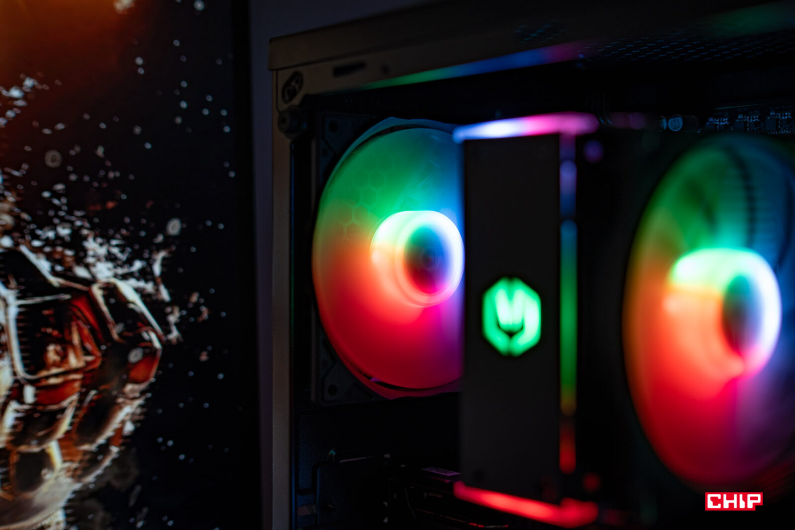Komputer jest przemyślany również pod względem chłodzenia czy głośności. Temperatury wszystkich podzespołów są niskie, a całość jest cicha nawet podczas grania. Tutaj spory plus za dużą liczbę wentylatorów, dobre chłodzenie procesora czy naprawdę fajny model karty graficznej. Jeśli też lubicie spore podświetlenie to będziecie zadowoleni – komputer naprawdę fajnie wygląda i sporo podświetlenia robi wrażenie.