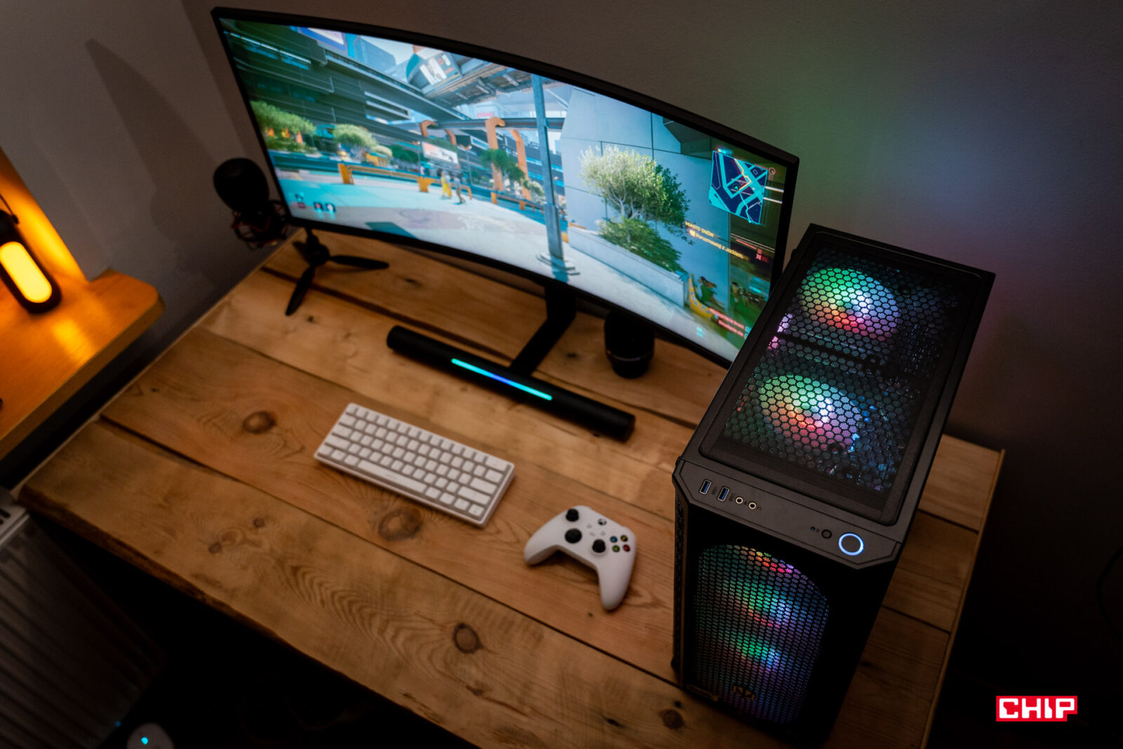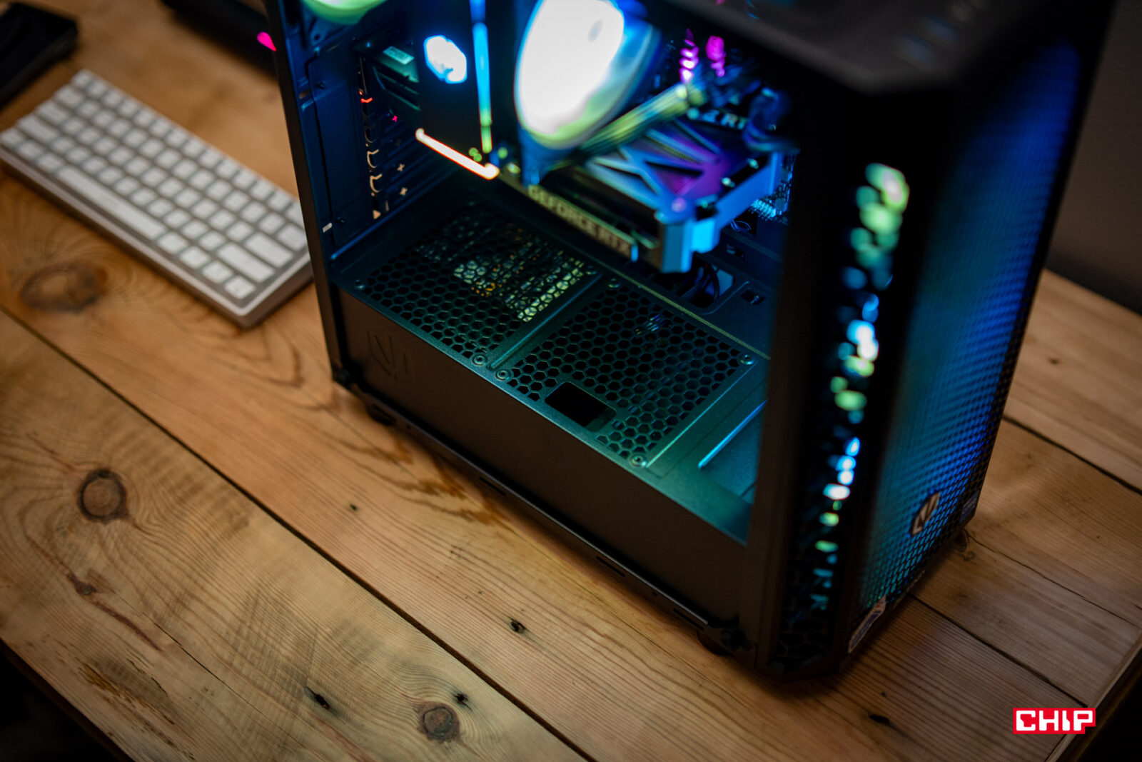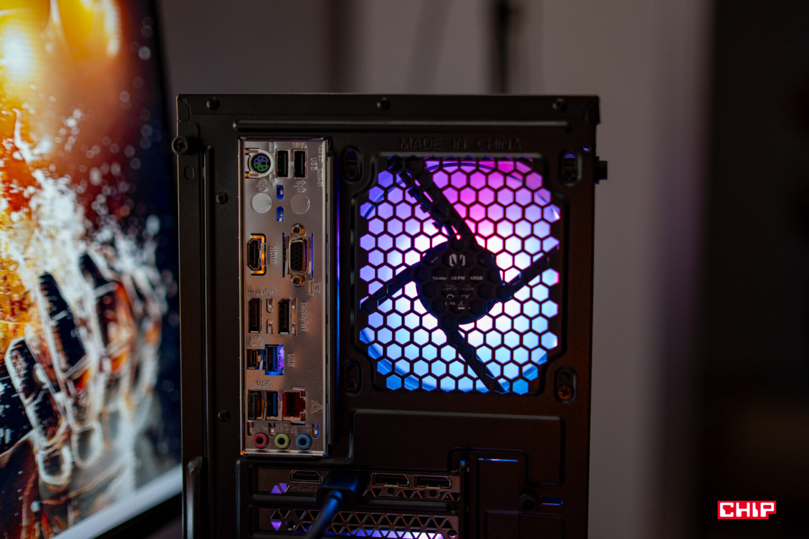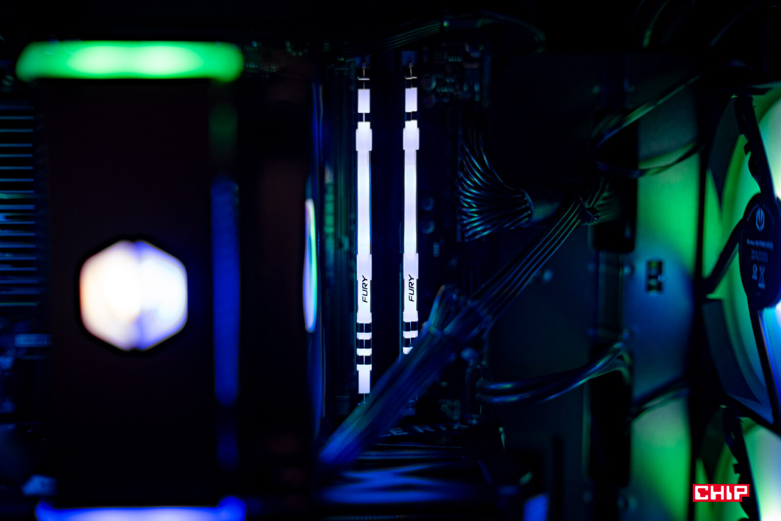 Komputer jest przemyślany również pod względem chłodzenia czy głośności. Temperatury wszystkich podzespołów są niskie, a całość jest cicha nawet podczas grania. Tutaj spory plus za dużą liczbę wentylatorów, dobre chłodzenie procesora czy naprawdę fajny model karty graficznej. Jeśli też lubicie spore podświetlenie to będziecie zadowoleni – komputer naprawdę fajnie wygląda i sporo podświetlenia robi wrażenie.