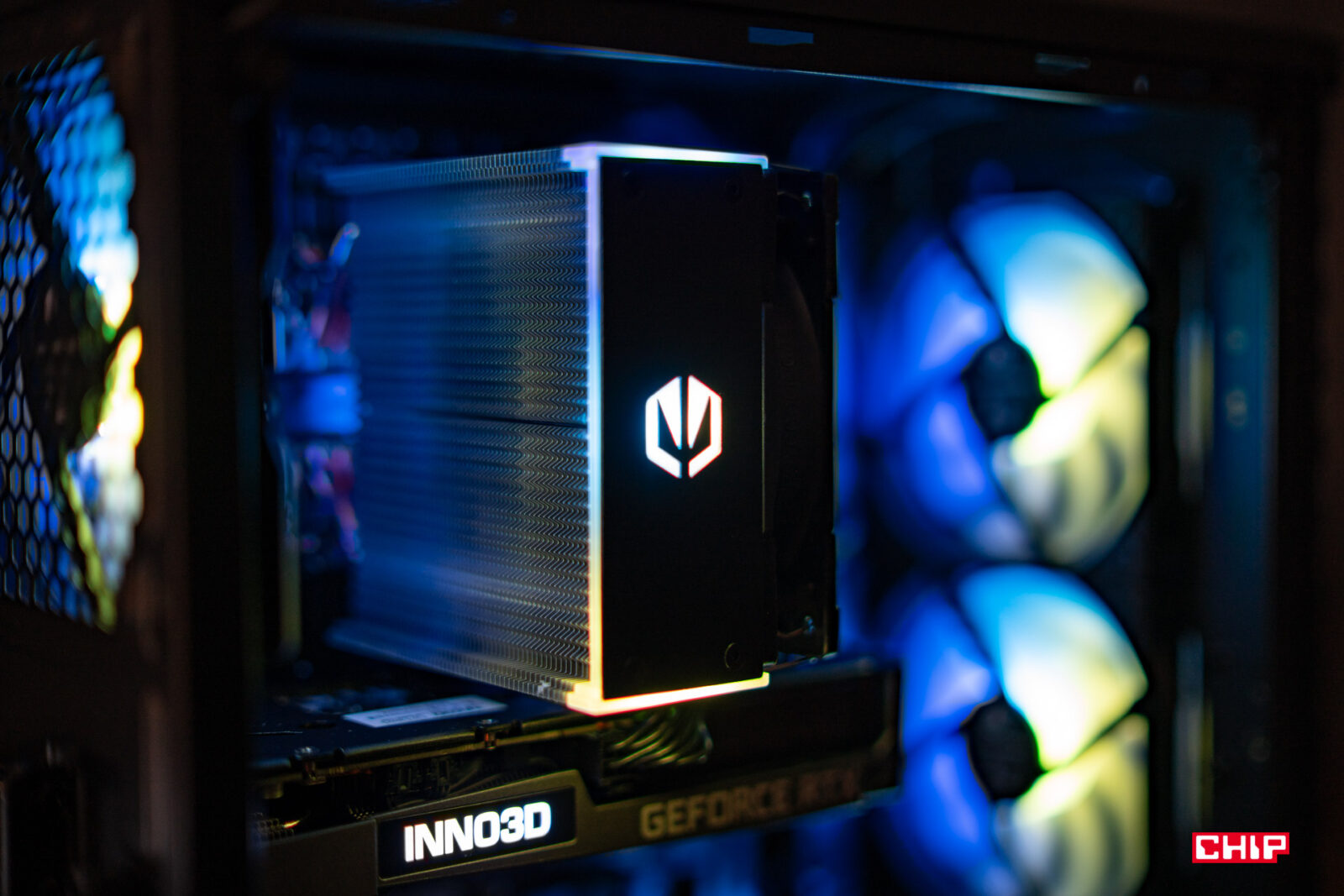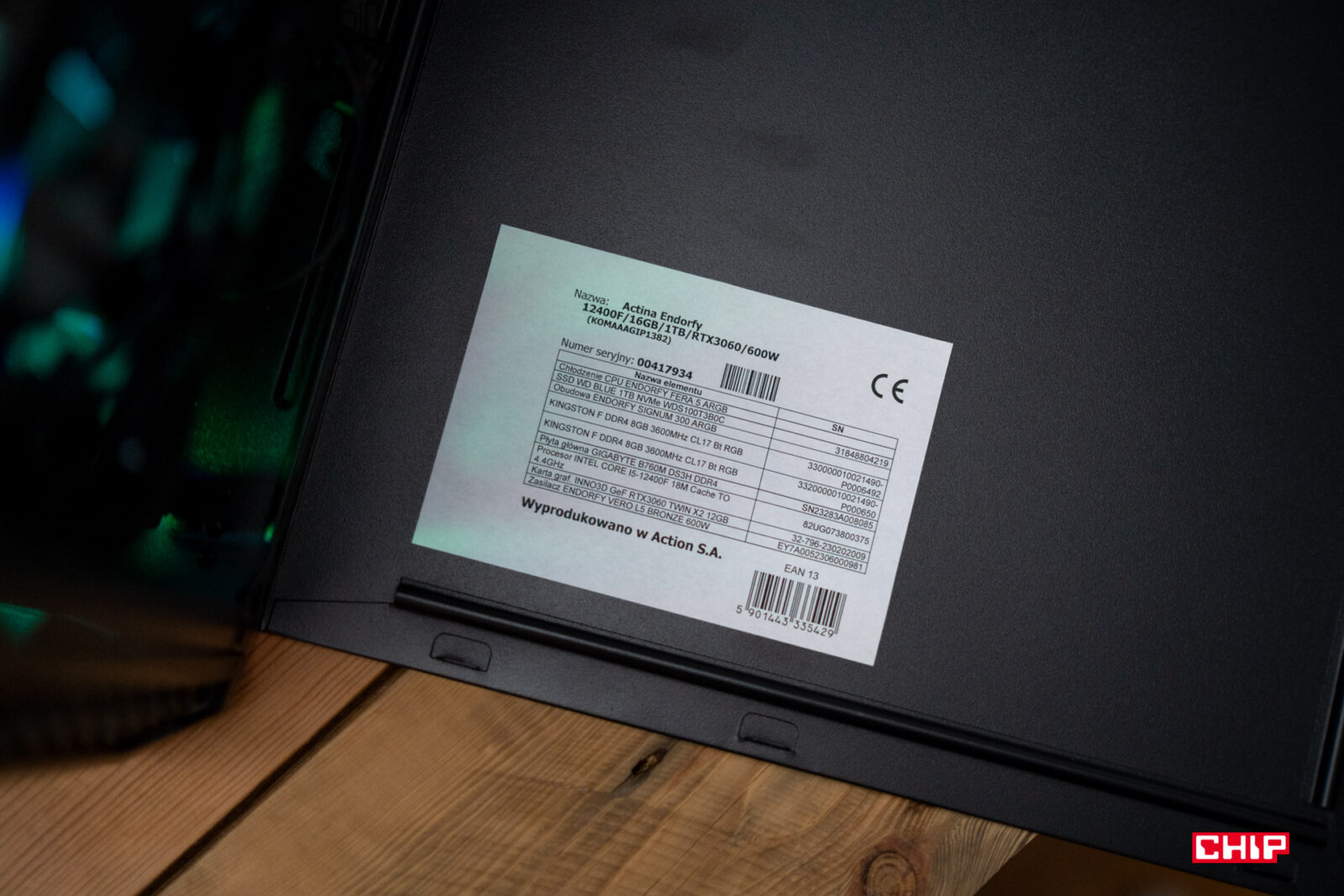 Pozostałe części to obudowa Signum 300 ARGB i zasilacz Endorfy Vero L5 600 W. Obudowa ma cztery wentylatory, który mają podświetlenie i zapewniają świetny przepływ powietrza. Jest też dosyć prosta w czyszczeniu i może się podobać. Zasilacz to podstawowa konstrukcja polecana do wielu zestawów. Ma ona odznaczenie 80 Plus Bronze oraz cichy wentylator. Pod tym względem ciężko też cokolwiek Actinie zarzucić.