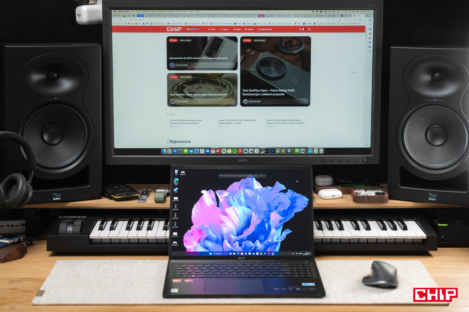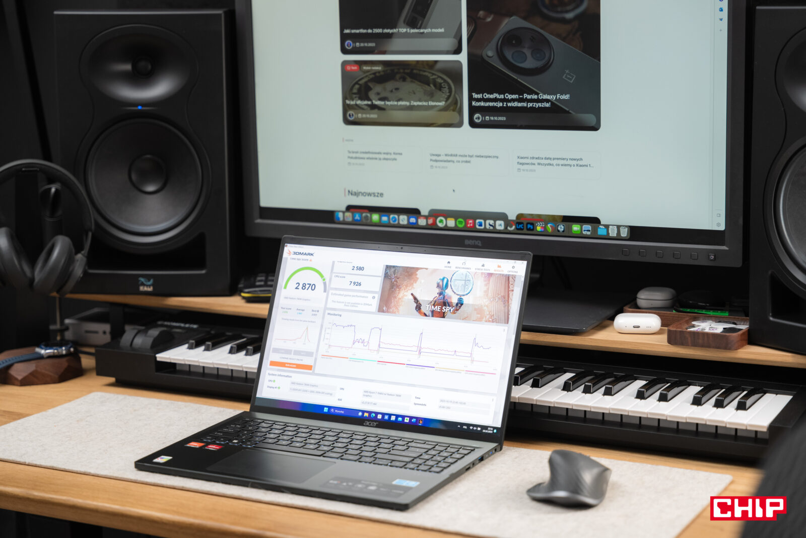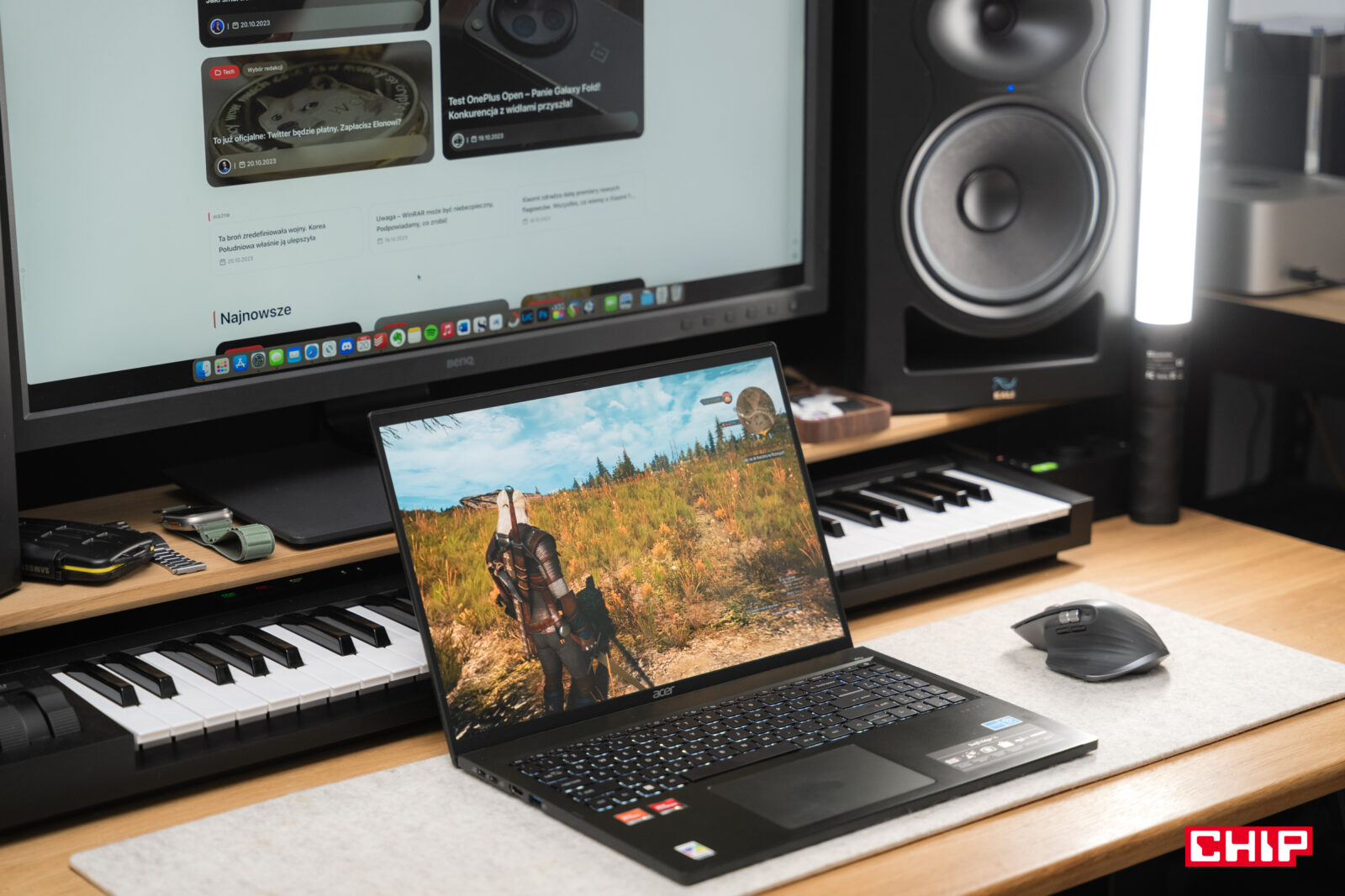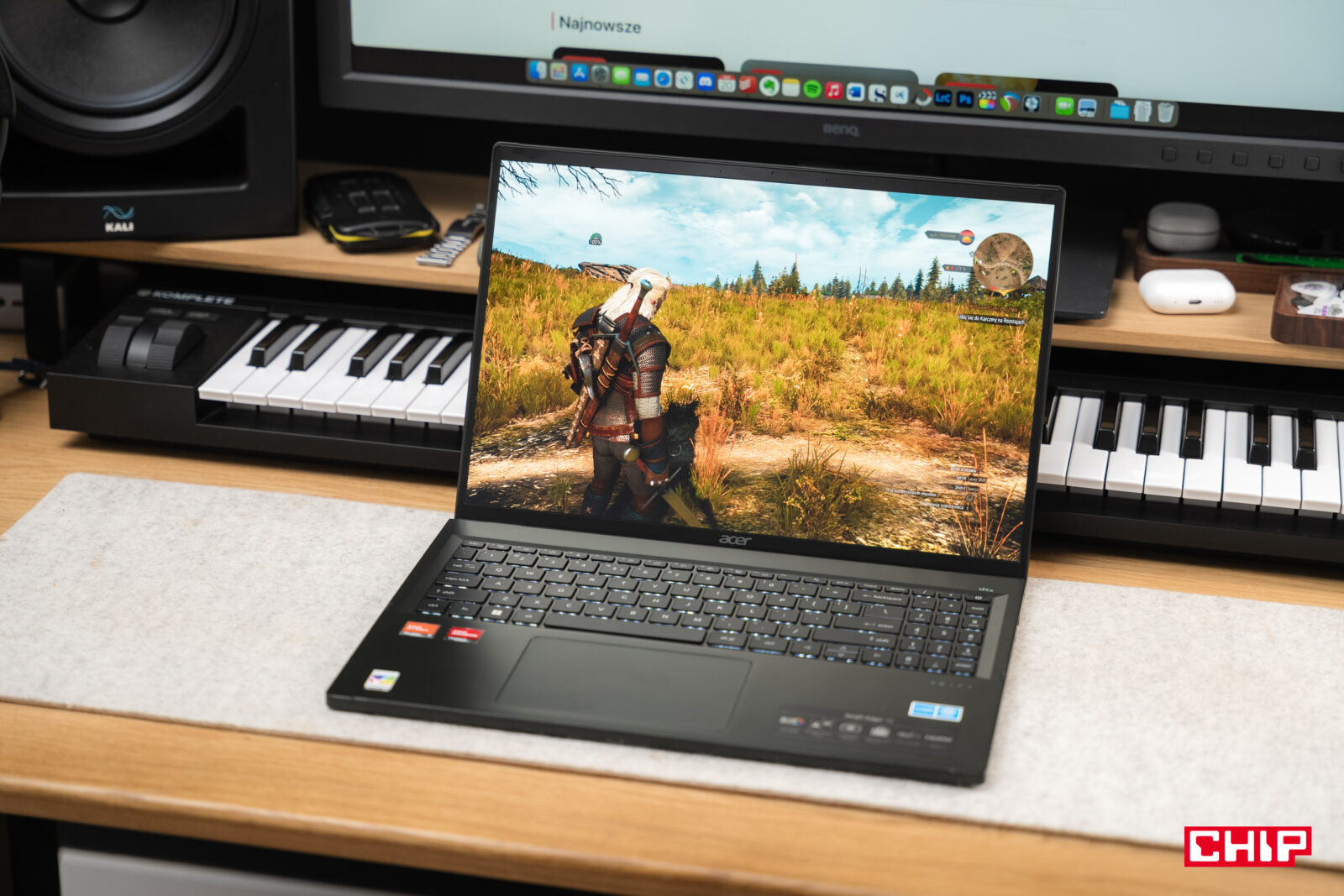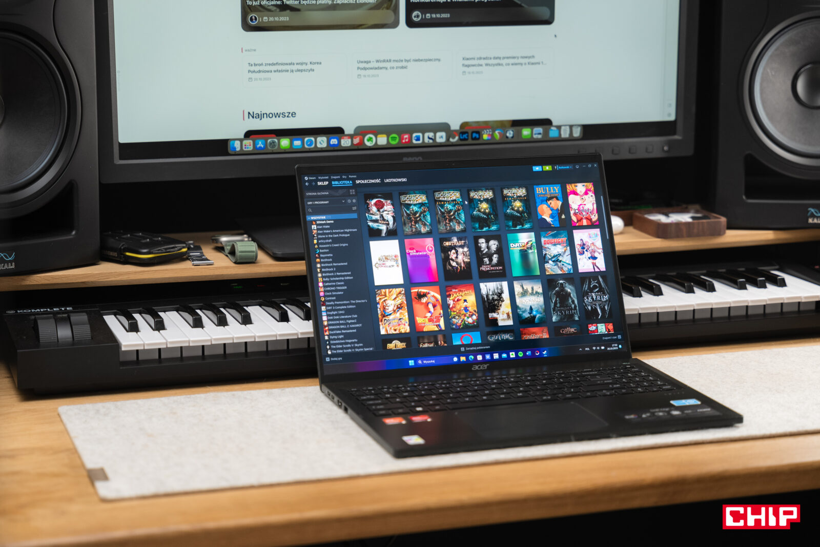 Innymi słowy, AMD w tej kategorii musi się zmierzyć nie tylko ze swoim arcyrywalem – Intelem – ale także z Apple’em i bestsellerowymi MacBookami Air z układami Apple Silicon. Jeśli wierzyć syntetycznym testom zaprezentowanym przez AMD, nowy Ryzen łoi sprzęty Apple’a, nie mówiąc już o procesorach Intela, które rozjeżdża jak walec. Osobiście jednak pracuję w tej branży dość długo, by wiedzieć, że syntetyczne benchmarki mają niewiele wspólnego z realnym, codziennym użytkiem. Sprawdziłem zatem przede wszystkim to, jak Acer Swift Edge 16 z nowym procesorem AMD Ryzen 7 7840U sprawdza się w praktycznych zastosowaniach.
