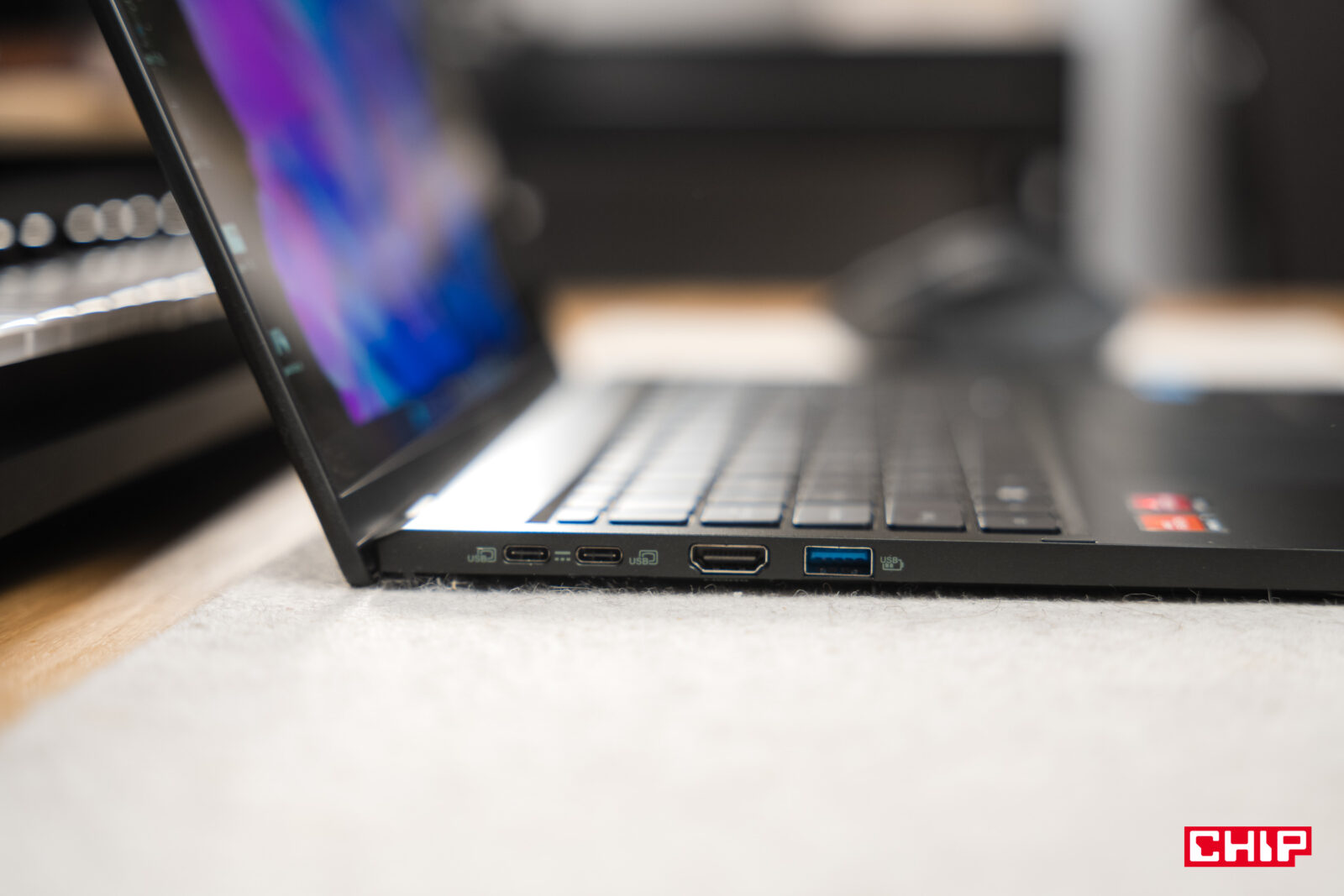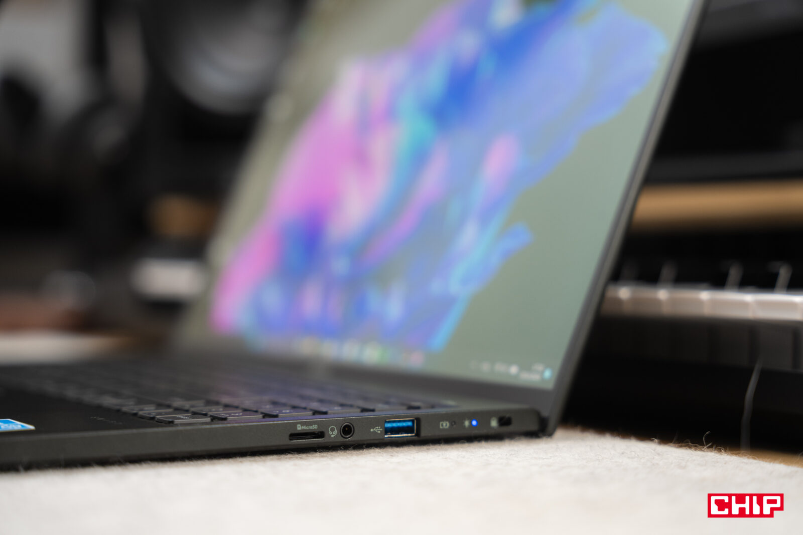 W przypadku tego konkretnego laptopa procesor wspierany jest przez 16 GB RAM-u LPDDR5 i SSD o pojemności 512 GB. Dodatkowo procesor jest wyposażony w dedykowany układ akcelerujący zadania związane ze sztuczną inteligencją, ale w chwili pisania tego tekstu obsługuje go wyłącznie wbudowana w system Windows 11 aplikacja aparatu.
