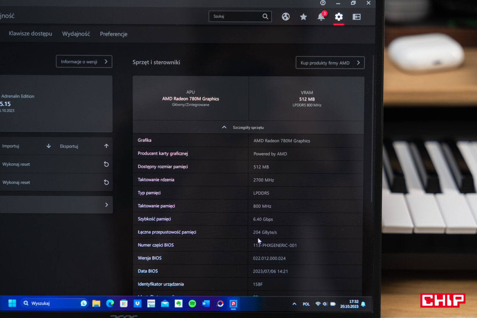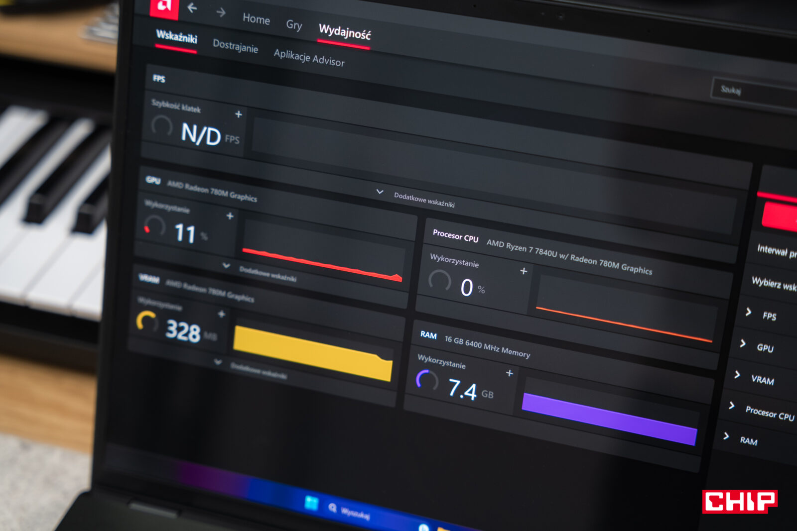 Kultura pracy również pozostawia bardzo wiele do życzenia, ale do tego przejdziemy później. Na duży plus muszę jednak zaliczyć czas pracy, który przy pracy typowo biurowej (przeglądarka + pakiet Office + Spotify) spokojnie wystarcza na ponad 10 godzin, a jeśli pooglądamy trochę wideo na YouTubie, czy w międzyczasie obrobimy kilka zdjęć, nadal wynosi on spokojne 7-8 godzin, co jest bardzo dobrym wynikiem. Duża w tym zasługa procesora, zatem pora przejść do możliwości samego Ryzena 7 7840U.