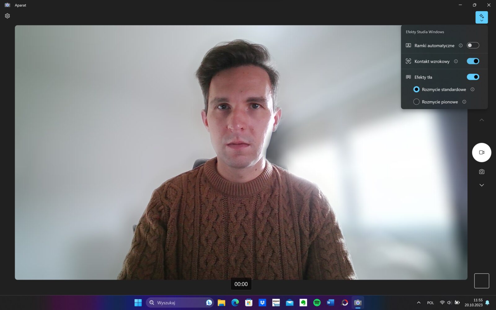 Jak to działa możecie zobaczyć poniżej. Dzięki dedykowanemu procesorowi AI funkcja podmiany tła i utrzymania kontaktu wzrokowego nie obciąża głównego procesora i działa błyskawicznie, oraz niemal bezbłędnie. Wielka szkoda, że póki co inne programy nie zostały zoptymalizowane do obsługi tego procesora, a przynajmniej nie zauważyłem, by miał on jakikolwiek wpływ na działania w takich programach jak Adobe Lightroom/Photoshop czy DaVinci Resolve, a przecież nie brakuje tam funkcji korzystających z sieci neuronowych. Ufam jednak, że to się prędko zmieni, bo aż żal nie wykorzystać takiego potencjału.