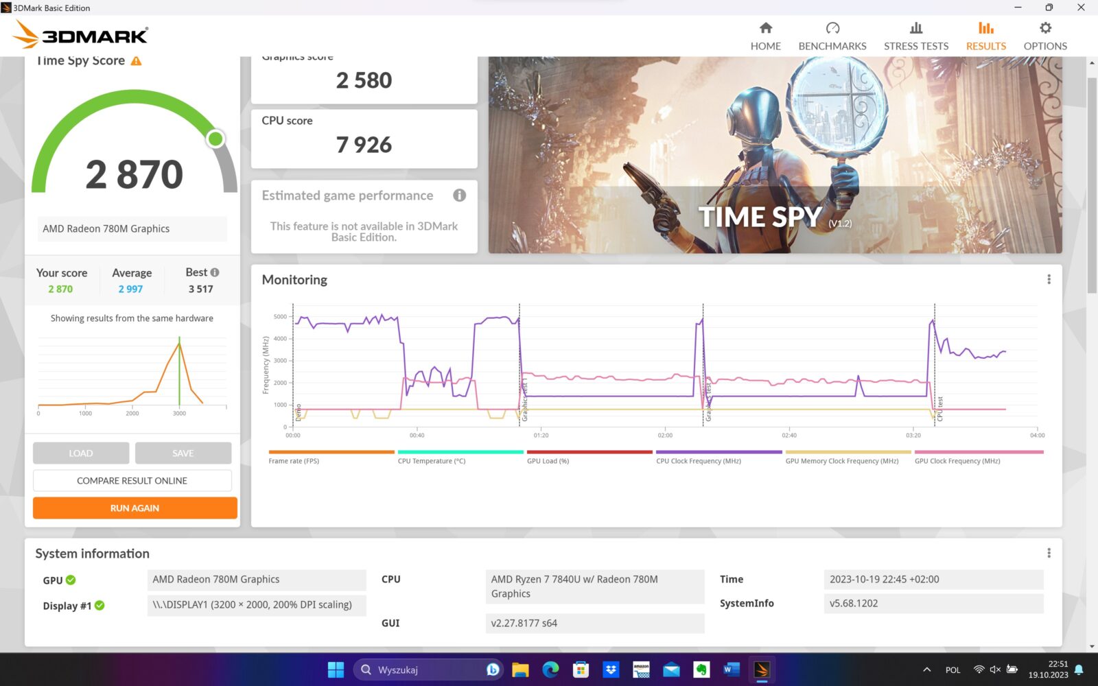 Co ciekawe, w obydwu trybach zasilania taką samą wydajność osiąga układ graficzny według testu 3D Mark TimeSpy:
