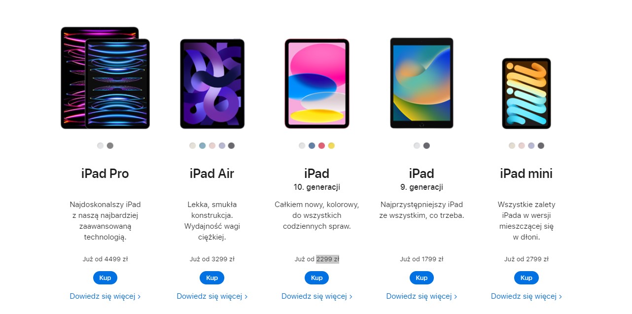 - iPad 10.generacji kosztuje teraz od 2299 zł (wcześniej ceny zaczynały się od 2899 zł).