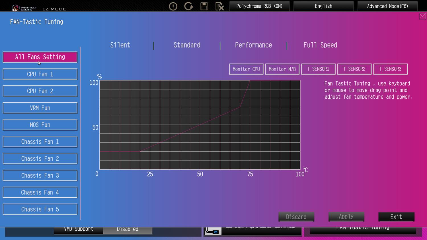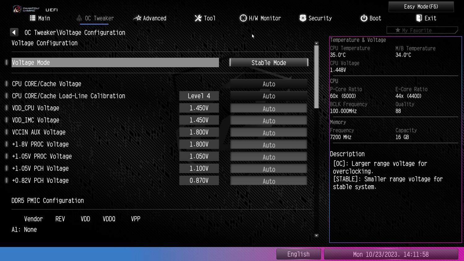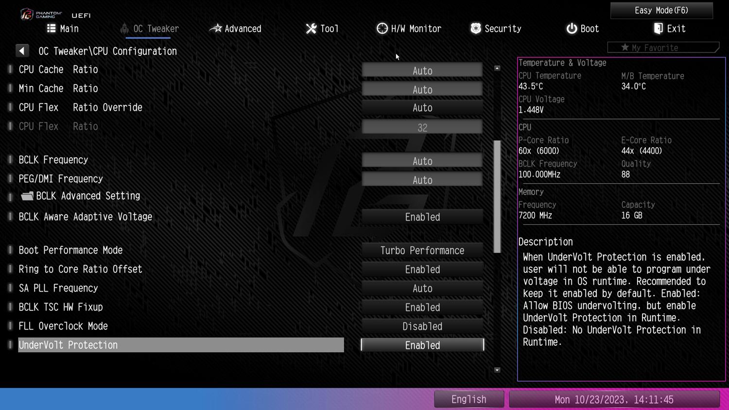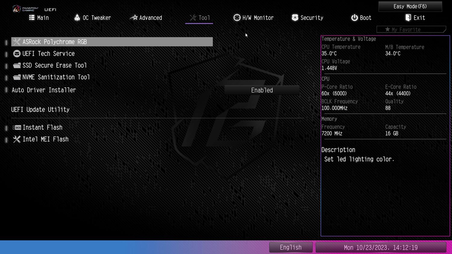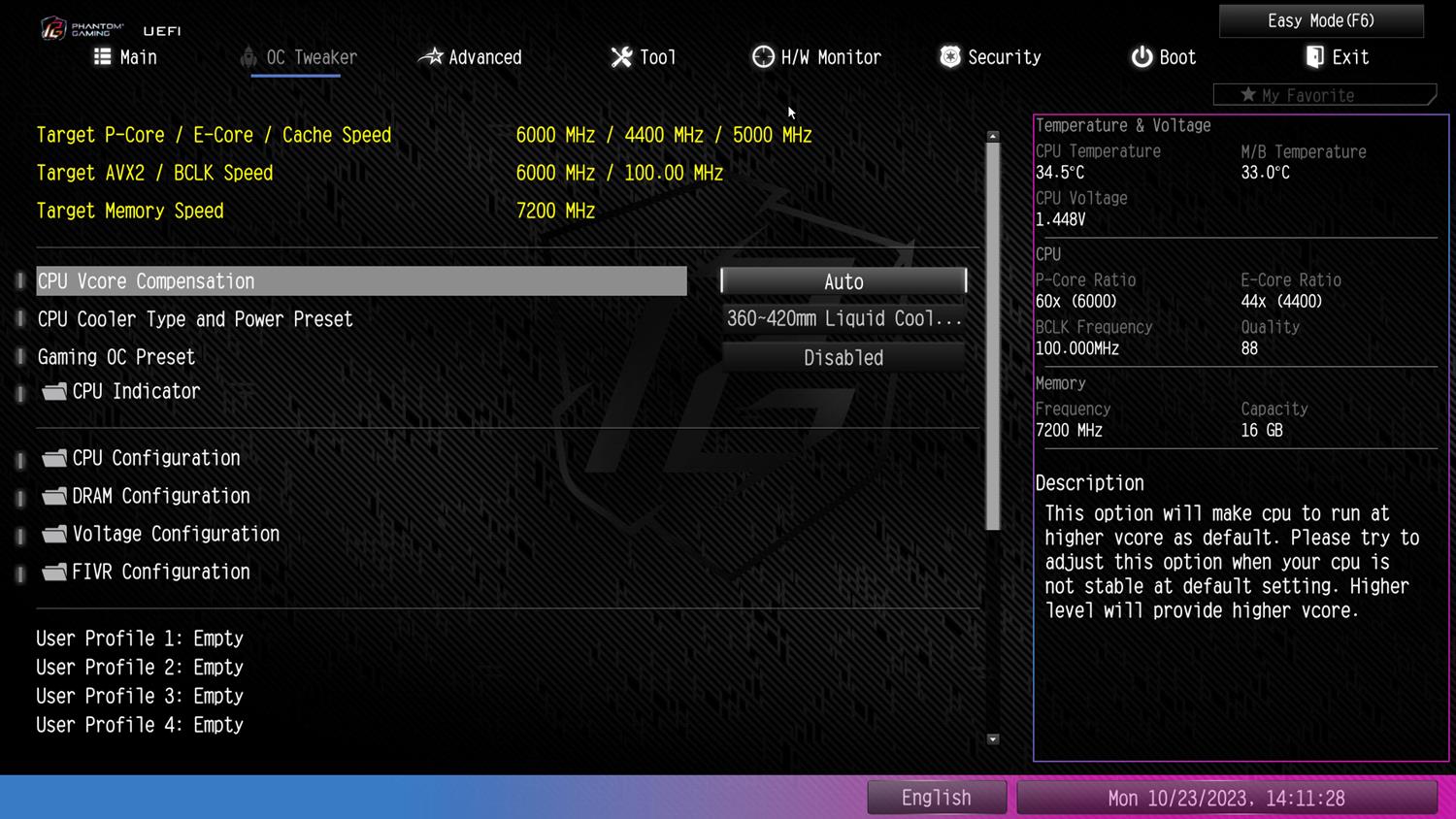 W BIOSie jak zawsze mamy tryb Ez, gdzie łatwo włączycie XMP, sprawdzicie wentylatory czy ustawicie ich krzywą. Jest tez opcja wyboru chłodzenia procesora, od którego zależą limity mocy. Przy 360-420 mamy je zdjęte, 240-280 to 253 W, 120-140 to 180 W, a air cooler to 125 W. Z ciekawych rzeczy jest jeszcze CPU Indicator, który ocenia procesor i podpowiada, czy można z niego więcej wycisnąć. Poza tym wszystkie opcje są ładnie poukładane w zakładkach, procesor można łatwo podkręcić i nie ma problemów ze znalezieniem interesującej nas opcji. Resizable BAR jest też domyślnie włączony. BIOS jest typowy dla firmy, ale ciężko coś jemu zarzucić.