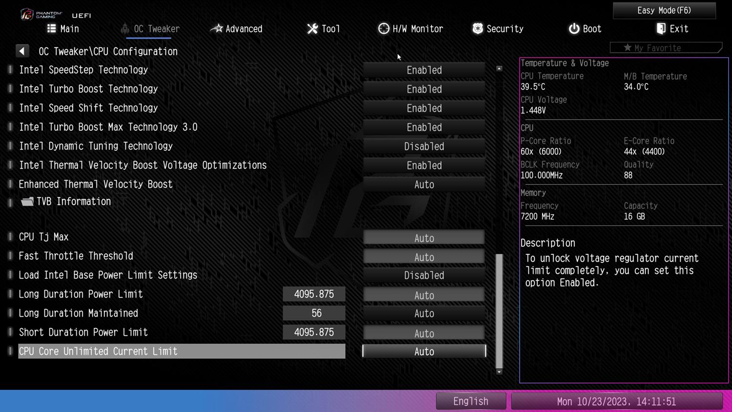 Testy wykonałem przy domyślnych ustawieniach BIOSu. Włączyłem tylko profil XMP pamięci, który zadziałał bez problemów. Domyślnie na płycie mamy też zdjęte limity mocy procesora.