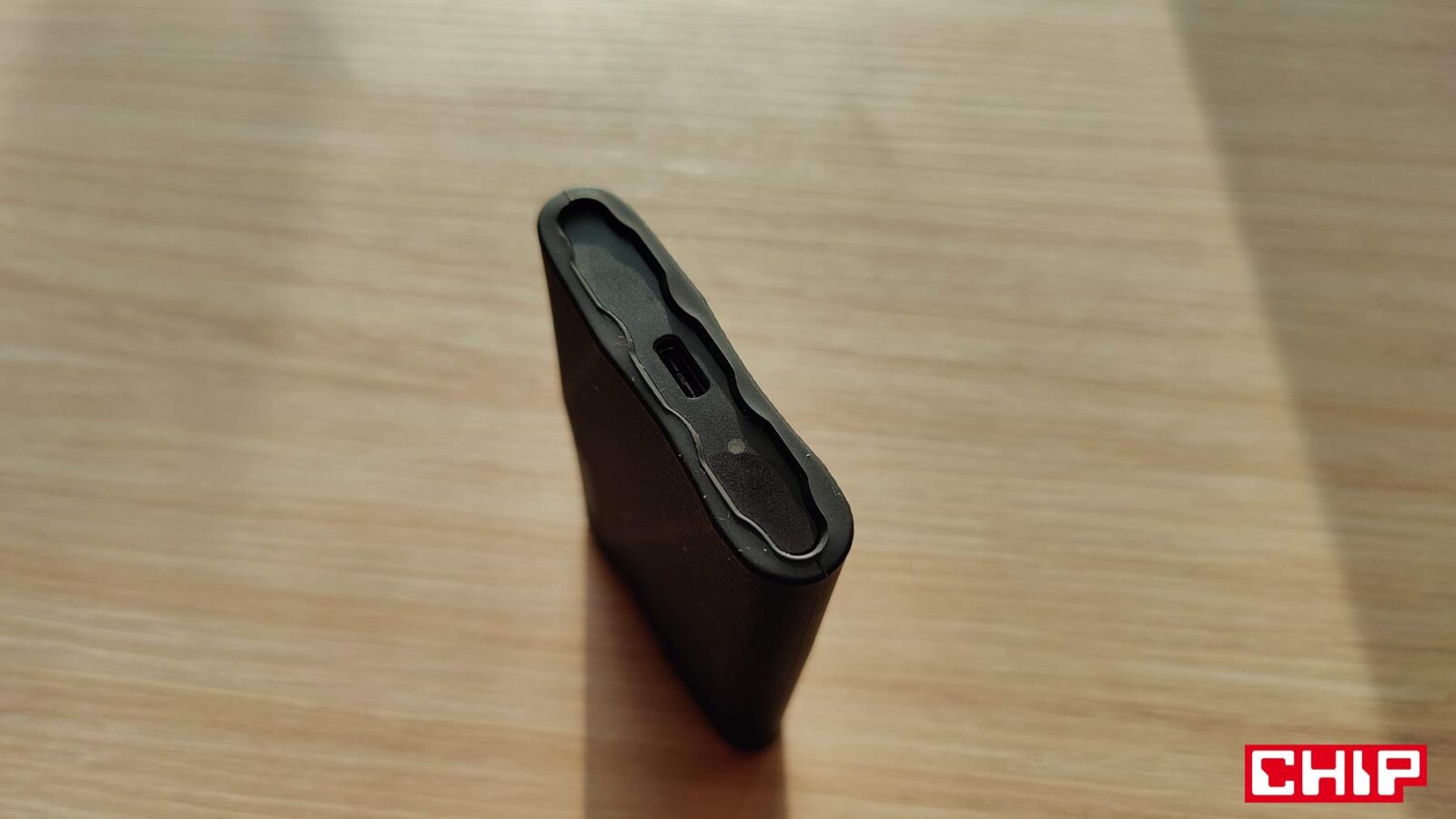 Kiedy wspominam, że T9 jest mały, rzeczywiście mam to na myśli, bo w praktyce ten ośnik waży ledwie 122 gramów i mierzy 88 × 66 × 14 mm. Jest więc mniejszy nawet od portfeli typu slim, a do tych większych może bez problemu się wsunąć, a podkreślam to nie bez powodu, bo jako że ten dysk Samsunga nie ma żadnej przelotki np. na smycz, to konieczne jest zadbanie o odpowiednie miejsce transportowe w naszym codziennym bagażu. Jego złącze USB-C nie jest zresztą osłonięte, więc musicie być pewni, że kiedy już wrzucicie go na dno plecaka, nie będzie narażony zarówno na drobinki, jak i wilgoć. Zwłaszcza że czyszczenie gumowej powierzchni tego dysku do łatwych nie należy.