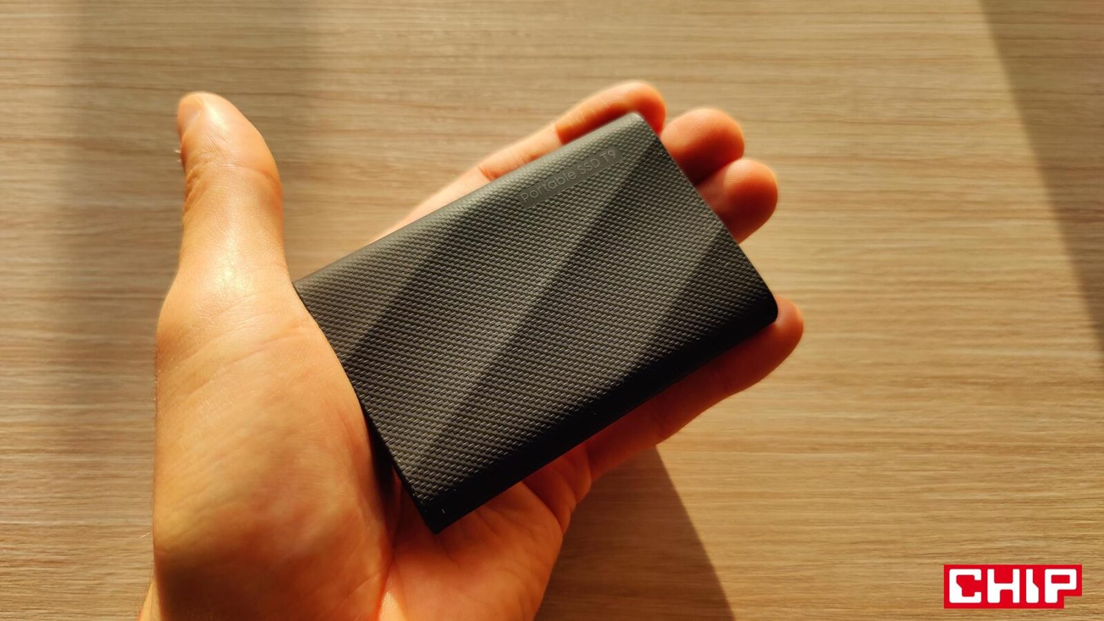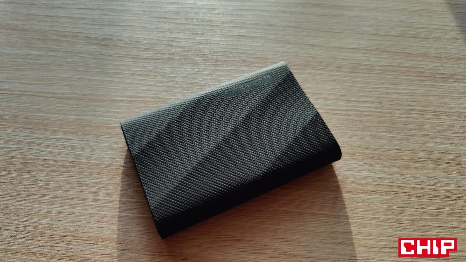 Sama forma T9 jest z jednej strony prosta, a z drugiej elegancka. Zewnętrzna część obudowy to głównie guma o fakturze przypominającej materiał, która doczekała się sześciu designerskich wyżłobień, nazwy producenta i modelu oraz pojedynczego złącza USB-C w towarzystwie diody funkcyjnej. Sam proces korzystania z T9 jest prozaiczny – podpinamy do niego jeden z dwóch dołączonych przewodów (USB-C do USB-A 10 Gb/s lub USB-C do USB-C 20 Gb/s), wpinamy go do docelowego sprzętu, a system automatycznie wykrywa dysk. Proste? Proste. Zupełnie jak z tradycyjnym pendrive, ale tym, co odróżnia T9 od prostych pendrive, jest jego wysoka wydajność.