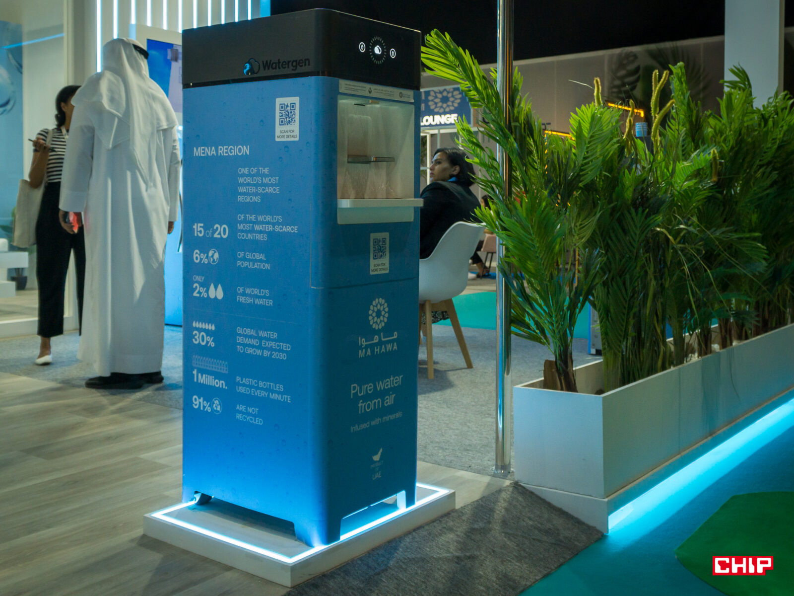 Opadu szczęki doświadczyłem na stoisku firmy Watergen, produkującej urządzenia do pozyskiwania wody pitnej z… powietrza. Cały proces odbywa się wewnątrz urządzenia przypominającego typowy biurowy dystrybutor wody. Zasysane do środka powietrze o konkretnej wilgotności przechodzi przez system filtrów, ulega następnie skropleniu w wymienniku ciepła, a pozyskana w ten sposób woda jest odkażana systemem lamp i filtrów UV oraz wzbogacana minerałami. Typowa jednostka jest w stanie generować do 30 litrów wody pitnej dziennie. Oczywiście są również większe przemysłowe modele, a także wariant kempingowy z własnym zasilaniem bateryjnym. Taka zabawka nie należy do najtańszych (okolice 4 tys. dolarów), ale w miejscach o ograniczonym dostępie do wody pitnej to wybór między życiem i śmiercią.