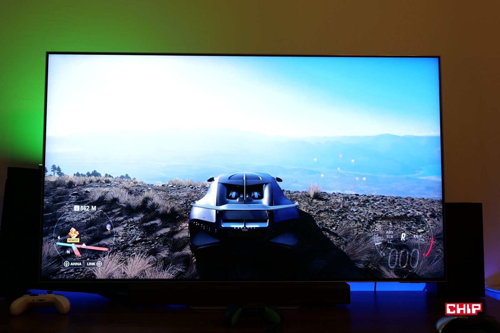 Na zdjęciach widzieliście telewizor Samsung Neo QLED QN85C w rozmiarze 55 cali, który przysłał mi producent. Do rozgrywki wykorzystywałem kontroler Microsoftu dla konsol Xbox Series. Telewizor połączyłem z siecią o maksymalnej przepustowości 600 Mbit/s odbioru i 30 Mbit/s wysyłania danych. W trakcie testów wynik ten był z reguły mniejszy o około 10% przy każdym z parametrów, a ping zarejestrowano na poziomie poniżej 10 ms. Zastosowany router transmituje internet w ramach sygnału Wi-Fi 5 na paśmie 2,4 GHz i znajduje się około metr od telewizora.