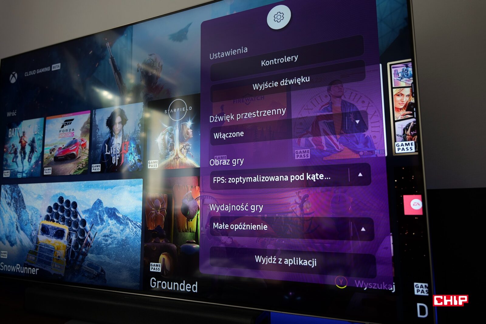 Tak się składa, że obok telewizora stoi też Xbox Series X, czyli obecnie najmocniejsza konsola Microsoftu, na której wiele tytułów działa w rozdzielczości 4K przy 60 klatkach na sekundę. Różnica w wielu grach na konsoli i na chmurze niewątpliwie jest zauważalna, zwłaszcza że ustawienia trybu gry w telewizorze Samsunga czynią obraz z HDMI ostrym jak żyleta. Czy są to jednak gigantyczne różnice, gdy od telewizora siedzi się 2,5 metra lub dalej? Nie powiedziałbym. Z pewnością kluczowa jest płynność rozgrywki i Auto Low Latency Mode realizowany przez złącze HDMI 2.1 znacznie zmniejsza opóźnienia. Nad tym aspektem usługi grania w chmurze muszą jeszcze popracować. Jednocześnie nie jest tak, że nie dało się przyzwyczaić do innego opóźnienia, grając np. w gry wyścigowe, a ponadto w części gier oczekiwanie na reakcję nie stanowi problemu.