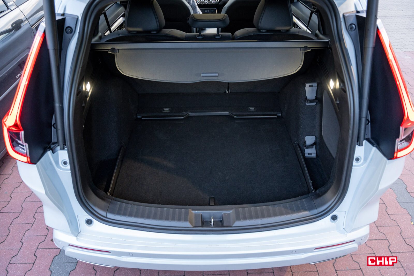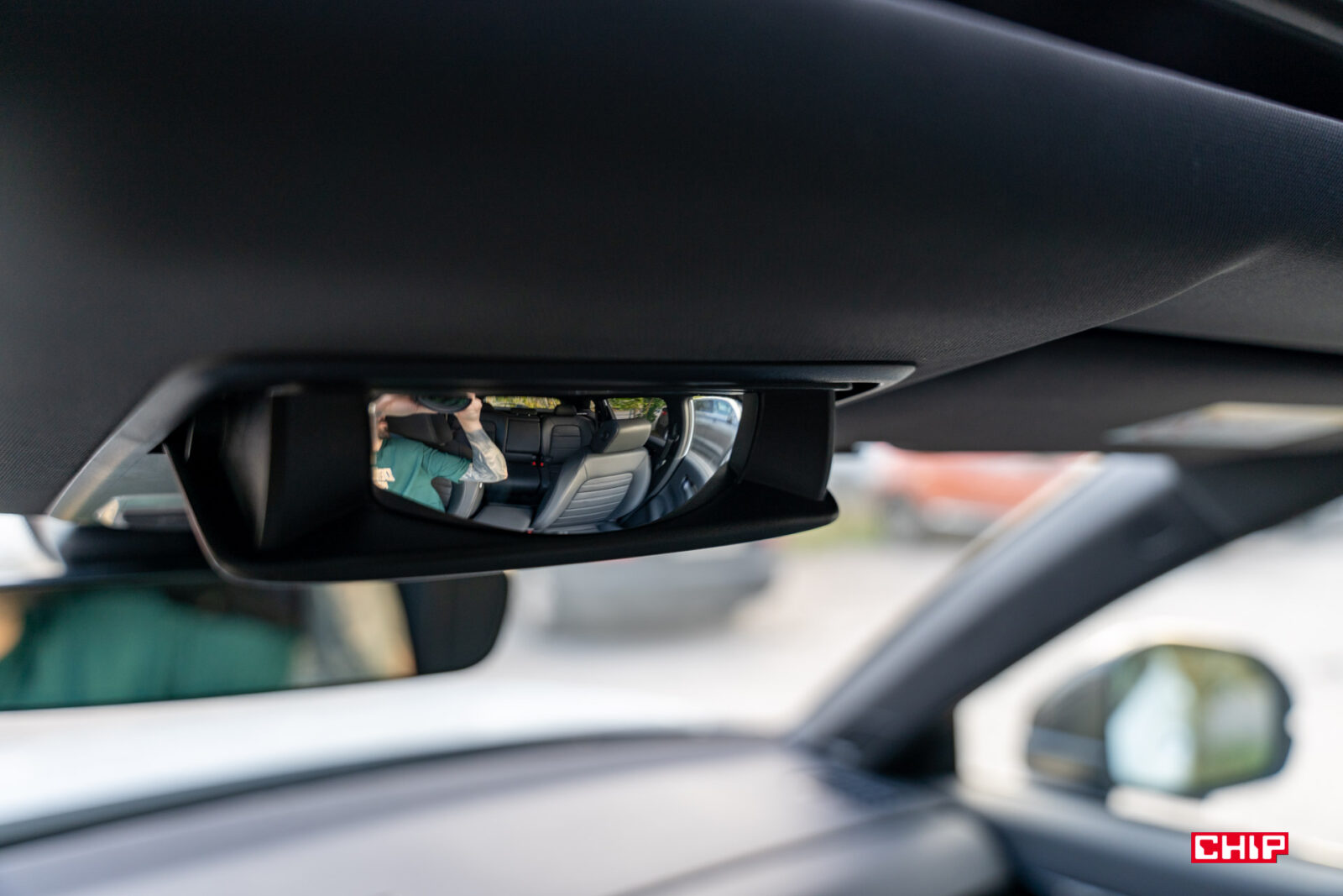 Jest dzielona w proporcjach 40/60 i w standardzie dostajemy grzane skrajne fotele oraz dwa porty USB-C. Listwy na drzwiach są podświetlne i dotyczy do wszystkich czterech drzwi, które dodatkowo trzeba pochwalić za otwieranie się niemal do kąta 90 stopni. Miejsca na tylnej kanapie jest bardzo dużo. Nad głową, przed kolanami oraz na stopy, które można bez problemu włożyć pod przednie fotele i to wszystko pomimo umieszczenia akumulatora pod tylną kanapą. Do tego możemy regulować kąt nachylenia oparcia oraz złożyć fotele idealnie na płasko.