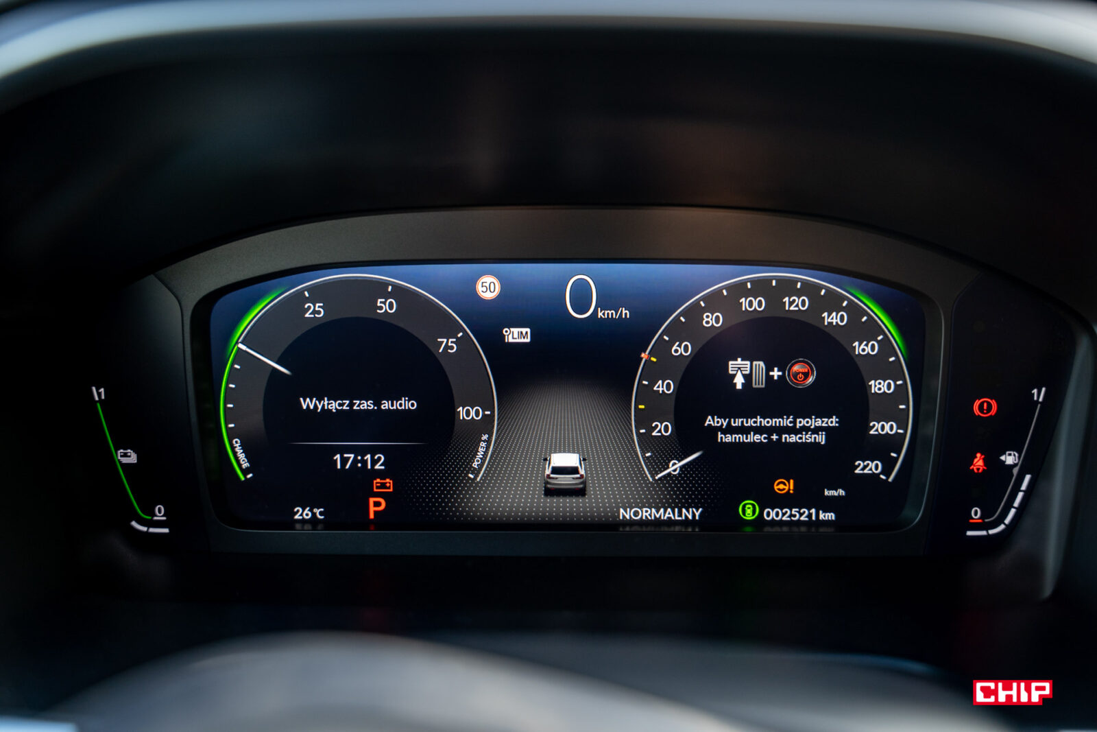 Ma on 17,7 kWh pojemności i według deklaracji producenta pozwala na przejechanie do 82 km na samym prądzie. Nam udało się przejechać 77 km, więc wynik jest zbliżony do reklamowanego przez Hondę. Oczywiście zimą taki wynik będzie nieosiągalny, ale nawet jeśli w praktyce będzie to 55-60 km, na codzienne potrzeby większości ludzi wystarczy.