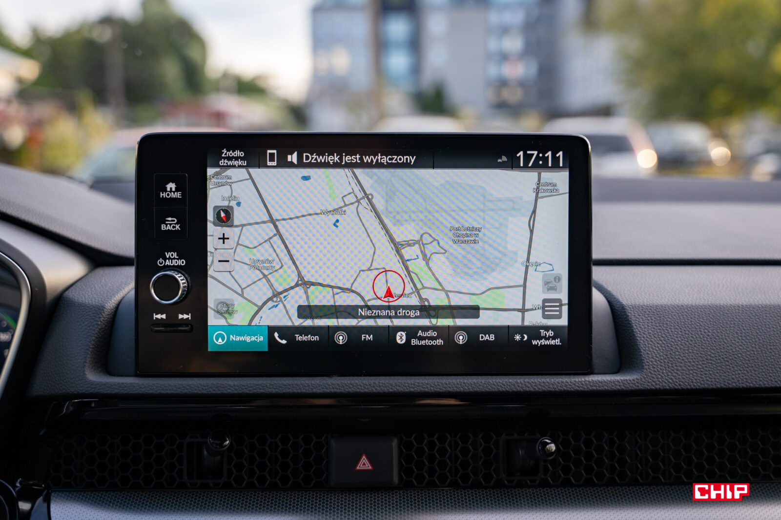 Tak, klimatyzacją czy regulacją głośności sterujemy za pomocą fizycznych przycisków i takie też mamy na kierownicy. Ekran główny nie jest rekordowo duży, ale dobrze umieszczony, bardzo dobrej jakości, z trzech strona otacza go cienka ramka i przykrywa matowe szkło. Interfejs nie różni się od tego, który znamy już z modeli Jazz, HR-V czy nowego Civika. Jest prosty, czytelny i bardzo intuicyjny, ale ma jeden ogromny minus. Ustawień pojazdu nie zmienimy w trakcie jazdy. Czyli np. działania asystentów, ich czułości czy powiązanych z nimi sygnałów dźwiękowych. Jest to możliwe wyłącznie na postoju.