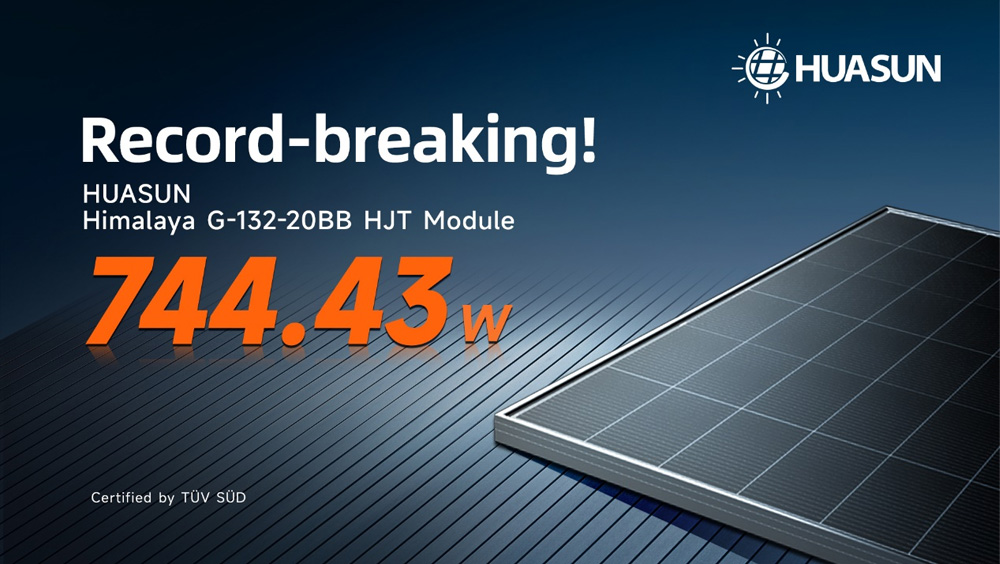 Moduł fotowoltaiczny HJT od Huasun, znany jako Himalaya G12-132, osiągnął moc 744,43 W. To rekordowy wynik