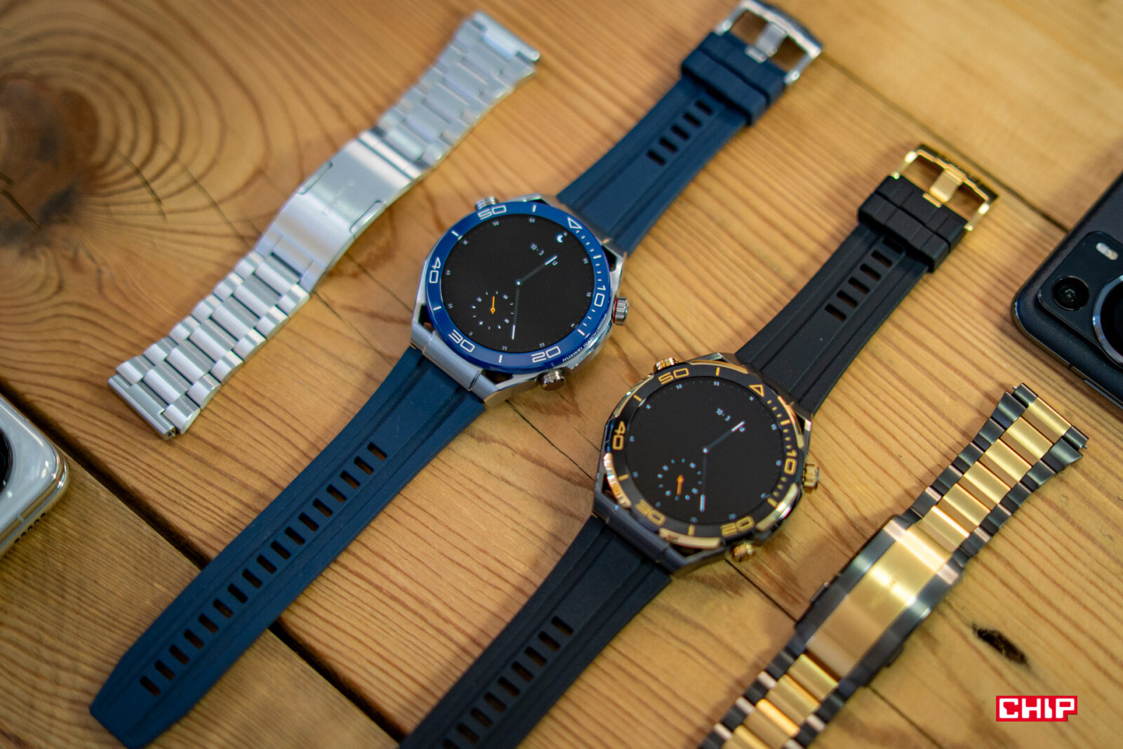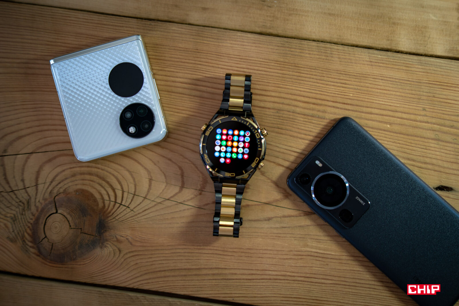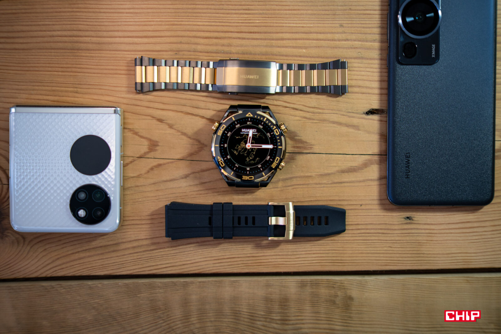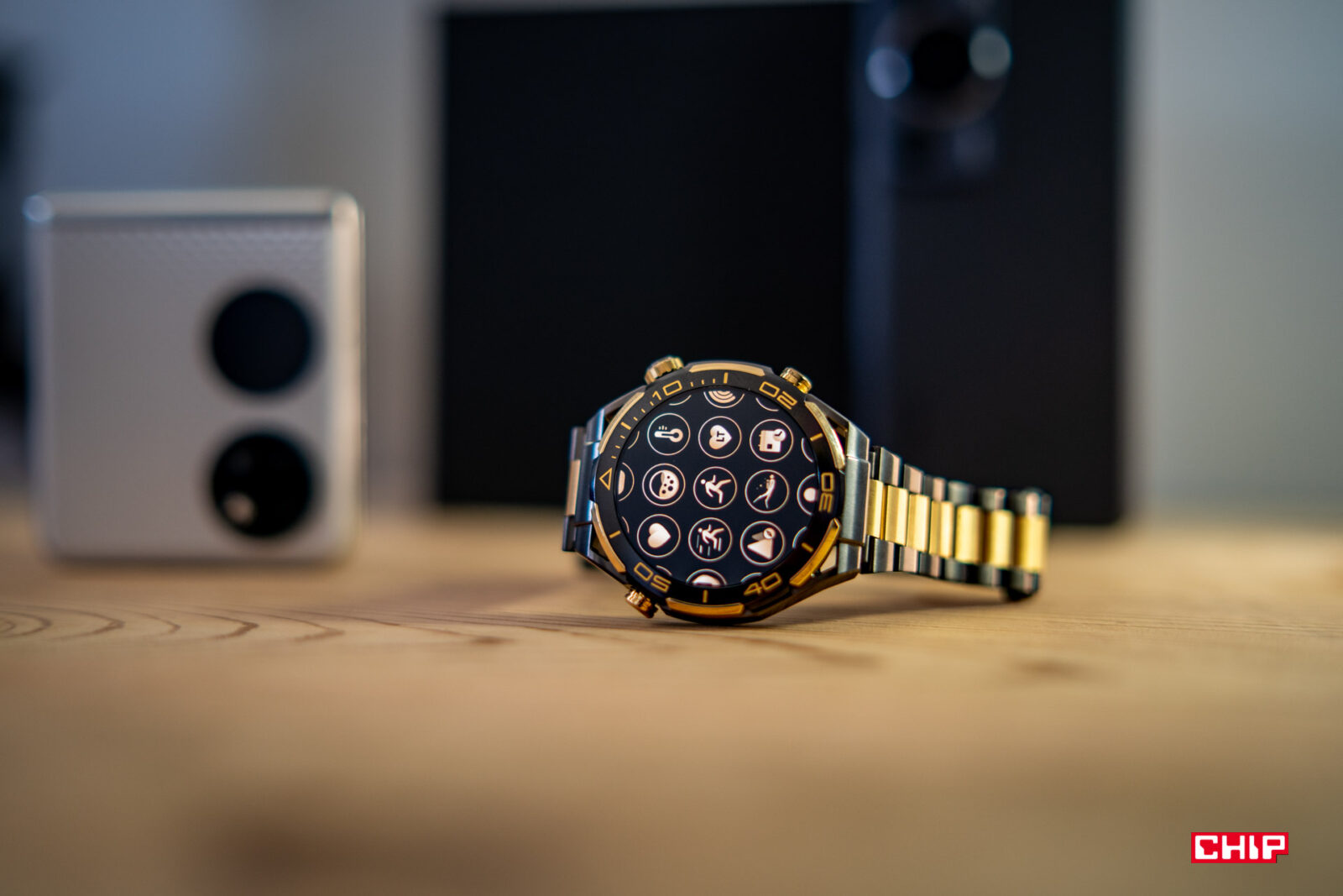 Piszę kolejne zdania i tak zerkam nieco w lewą stronę, gdzie leży Huawei Watch Ultimate Design, podstawowy Watch Ultimate, a obok nich Watch GT 4. Wiele osób powie, że bluźnię, ale nie do końca jestem fanem wyglądu Watcha Ultimate. Bardzo doceniam jego wykonanie, rozmiar i niską masę, ale wizualnie bliżej mi do modelu Watch GT 4. Za to im dłużej patrzę na Ultimate Design, tym bardziej mi się podoba. Złote wstawki nie są nachalne i prezentują się bardzo dobrze. Zdecydowanie chętniej sięgnąłbym po tak złocony zegarek, niż po cały pomalowany na złoto, jak choćby w przypadku G-Shocka, którego testowałem jakiś czas temu.