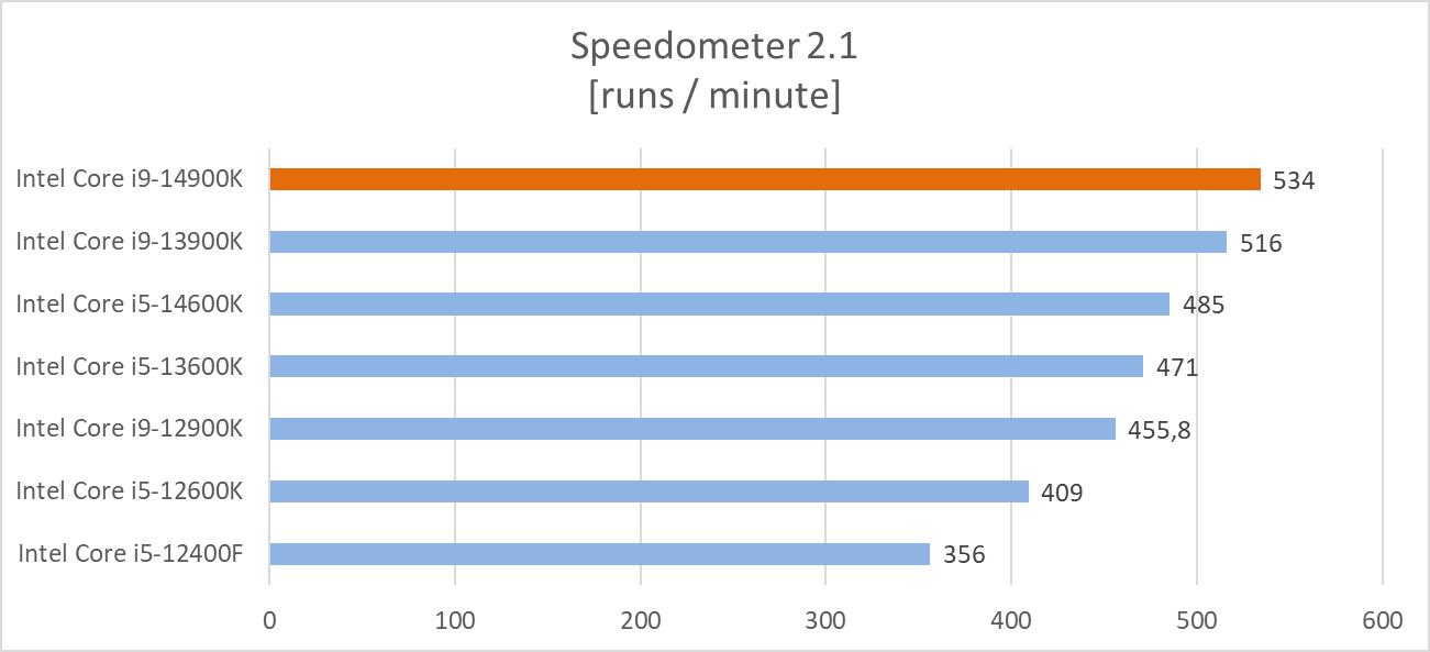 Speedometer 2.0 mierzy responsywność aplikacji internetowych. Jego plusem jest symulowanie działań wykonywanych przez użytkownika, co pozwoli na ocenienie wydajności różnych procesorów. Tutaj w testach wykorzystałem przeglądarkę Google Chrome.
