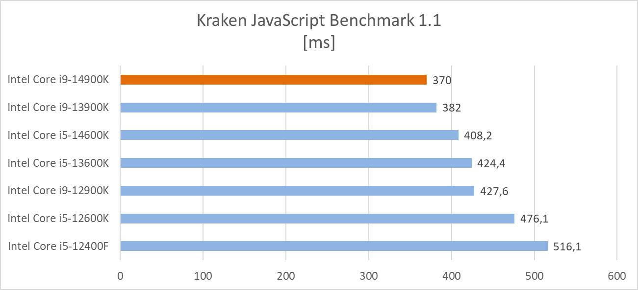 Kolejny benchmark porównuje wydajność w złożonych obliczeniach opartych o JavaScript. Wynik ma kilka różnych składników i podawany jest w milisekundach – interesuje nas całkowity rezultat. W testach wykorzystałem przeglądarkę Google Chrome.
