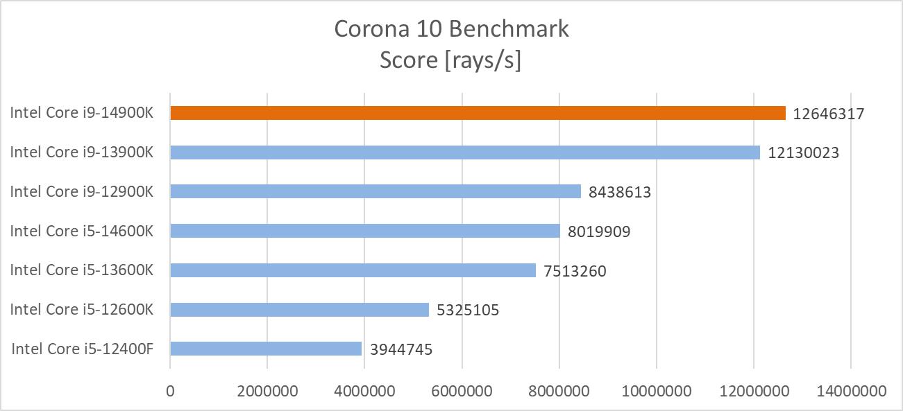 Silnik renderujący Corona dostępny jest Autodesk 3ds Max oraz Cinema 4D. Co ważne, nie wspiera on GPU, więc wydajność CPU jest tutaj kluczowa. W testach skorzystałem z benchmarka przygotowanego przez twórców, który dobrze sprawdza się w praktyce.
