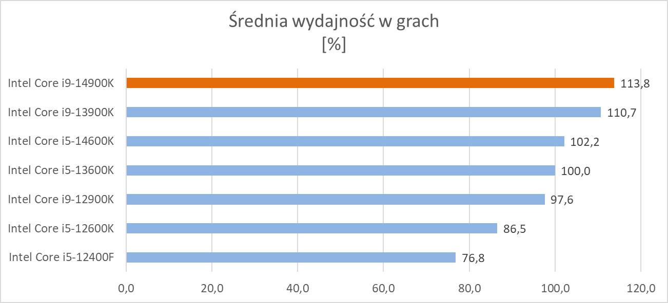 Intel Core i9-14900K ma kosztować 589 dolarów, co przekłada się na ok. 2500 zł, a z 23% VATem ok. 3075 zł. W sprzedaży będzie też model i9-14900KF w cenie 564 dolarów (ok. 2950 zł z VATem). Dla porównania i9-13900K kupicie za ok. 2940 zł, więc różnica w cenie nie jest duża. Procesor nie będzie jednak zawsze udanym zakupem. Jeśli macie i9-13900K to kompletnie nie ma sensu wydawanie takiej kwoty na nową jednostkę. Tutaj różnice w wydajności są zbyt niskie, aby zmiana procesora miała sens. Zakup nowej jednostki nie będzie też miał większego sensu, jeśli różnica w cenie w sklepach będzie większa. Wtedy w wielu przypadkach lepiej będzie to dołożyć do innych podzespołów. Jeśli jednak różnica w cenie będzie taka jak wyszło z przeliczeń i kupujecie nowy sprzęt lub wymieniacie znacznie starszy to wtedy oczywiście nowy procesor ma większy sens niż poprzednik. Różnice mimo wszystko występują, a przy niskiej różnicy w cenach (w stosunku do i9-13900K) lub ich braku to wiadomo, że Intel Core i9-14900K zapewni trochę lepszą wydajność. Natomiast wydajność prezentowana przez następcę i9-13900K z pewnością nie jest tą, jakiej bym oczekiwał po nowym modelu.