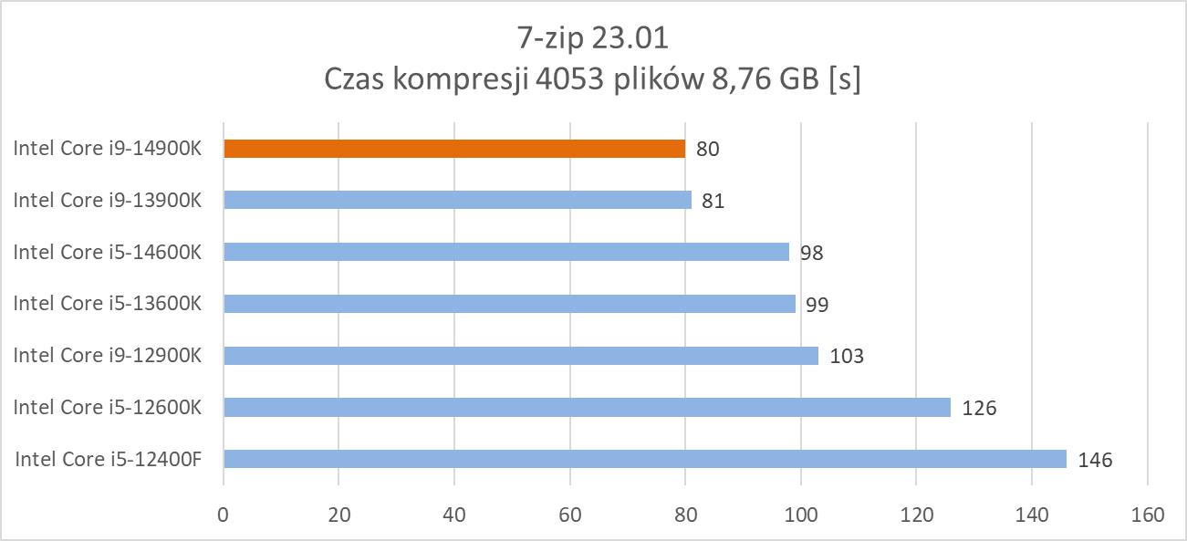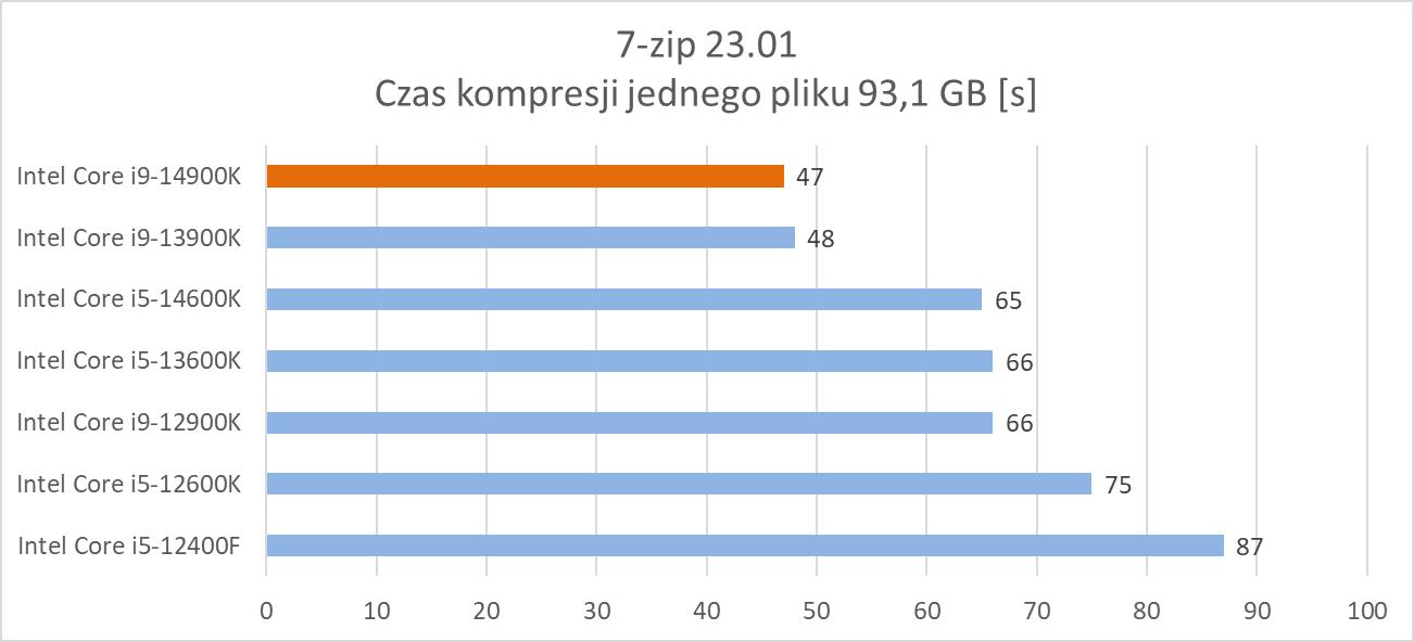 7-Zip to darmowy program do kompresji plików, który jest często wykorzystywany przez użytkowników komputerów. W teście sprawdziłem czasy pakowania (do formatu .7z) paczki 4053 plików o wielkości 8,76 GB oraz jednego pliku o wielkości 93,1 GB.