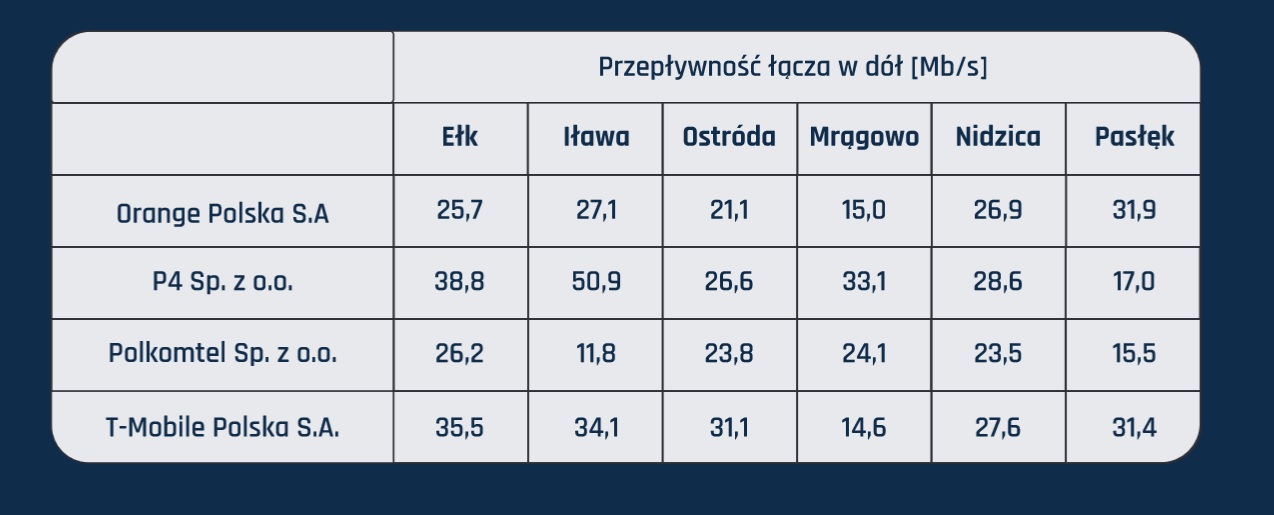 Niestety, choć nie ukrywam, że bardzo bym chciał, nie mogę Wam powiedzieć, jakie są wyniki pomiarów dla każdego z województw, bo w prezentacji wyników raportu, udostępnionym przez Ministerstwo Cyfryzacji, naprawdę przedziwnym zbiegiem okoliczności znajdują się tylko wyniki dla województwa warmińsko-mazurskiego. Na pewno zupełnie przypadkiem raport pokazano w Olsztynie, w obecności ministra cyfryzacji Janusza Cieszyńskiego, kandydującego tam do Sejmu. No tyle przypadków na raz to trzeba mieć ogromne szczęście…