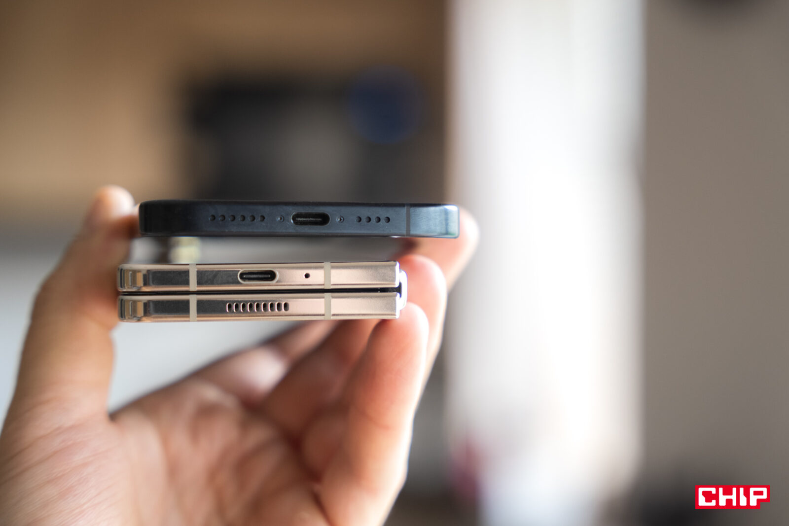 Są oczywiście aspekty, w których iPhone wypada lepiej od Samsunga. Podstawowym jest wytrzymałość; „tytanowa” obudowa ze standardem IP68 zniesie bez porównania więcej od niezabezpieczonej przed pyłem, składanej obudowy ze standardem IPX8.