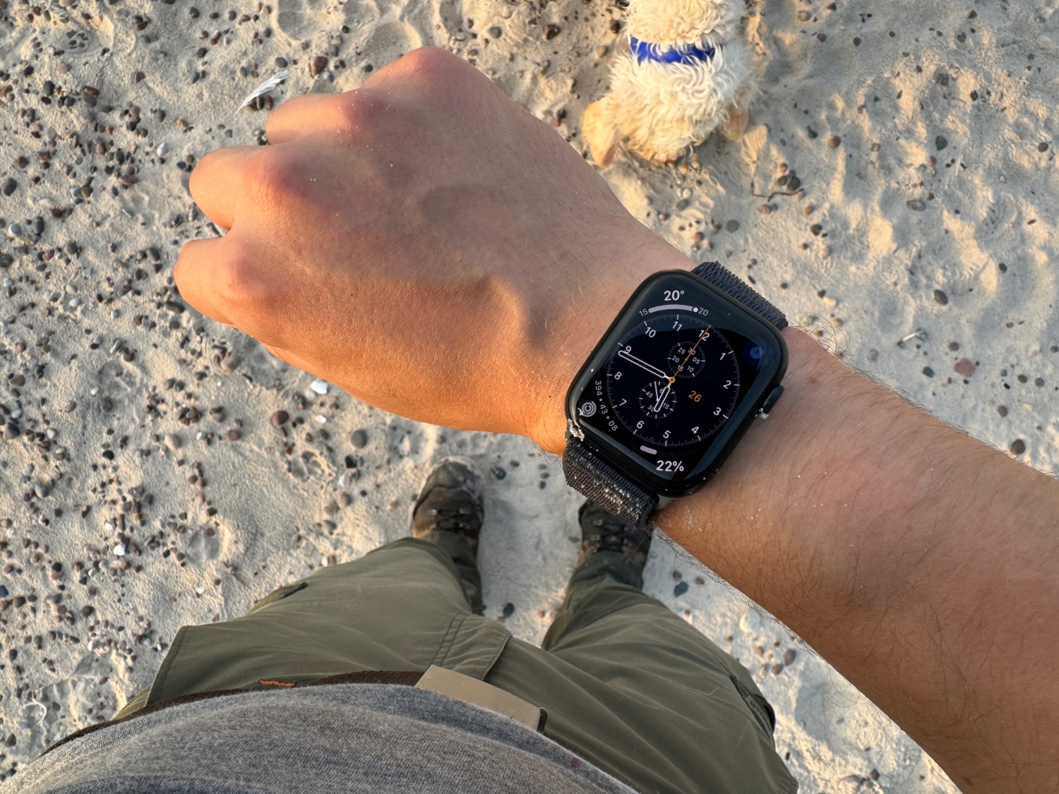 Od samego początku iPhone 15 Pro Max nie miał łatwego życia. Bardzo szybko okazało się, że „tytanowy” iPhone ma z „tytanem” tyle samo wspólnego co sreberko ze srebrem. Użytkownicy niemal od razu zaczęli zgłaszać problemy z łatwością rysowania się nowego materiału oraz przebarwieniami na obudowie. Przez miesiąc starałem się nosić telefon bez etui (także dlatego, że etui Fine Woven, które dostałem do kompletu, jest po prostu beznadziejne – nie kupujcie) i nie cackać się z nim wcale. Kilkukrotnie był ze mną na plaży, po wielokroć odkładałem go na twarde powierzchnie, raz nawet mój pies zrzucił go ogonem ze stolika kawowego na podłogę. O dziwo – nie ma na nim ani ryski. Jest za to mnóstwo przebarwień, które nie są co prawda widoczne na pierwszy rzut oka, ale gdy zaczniemy się przyglądać, to miejsca częstego kontaktu ze skórą mają definitywnie jaśniejszy odcień od tych rzadziej dotykanych.