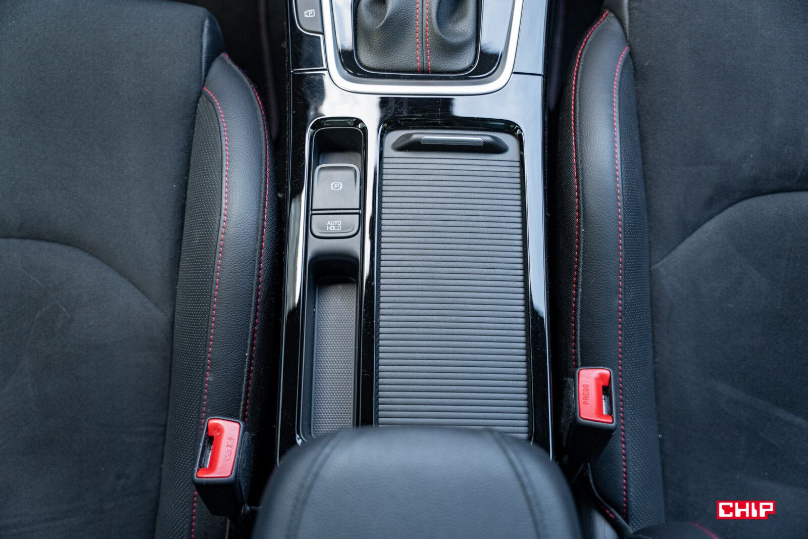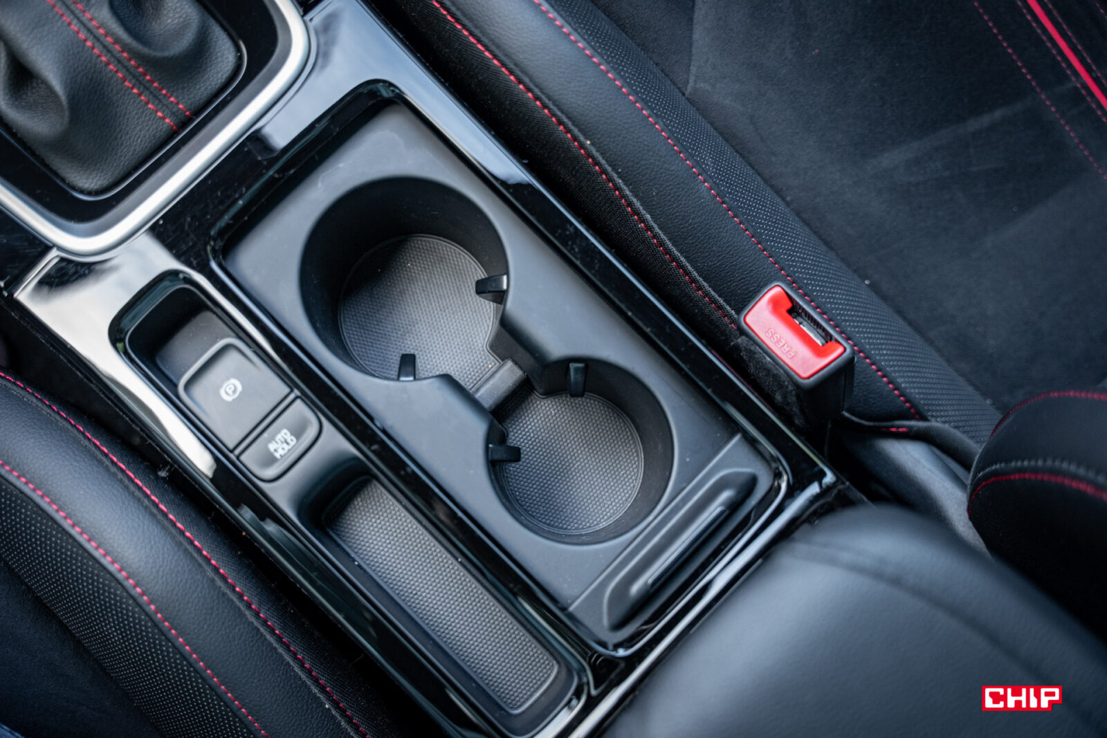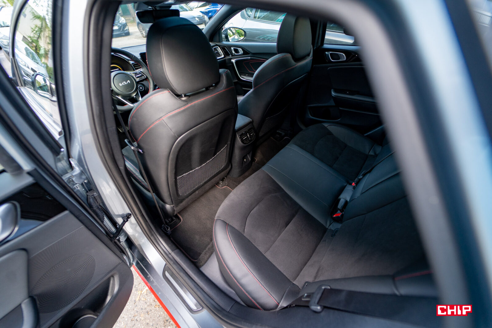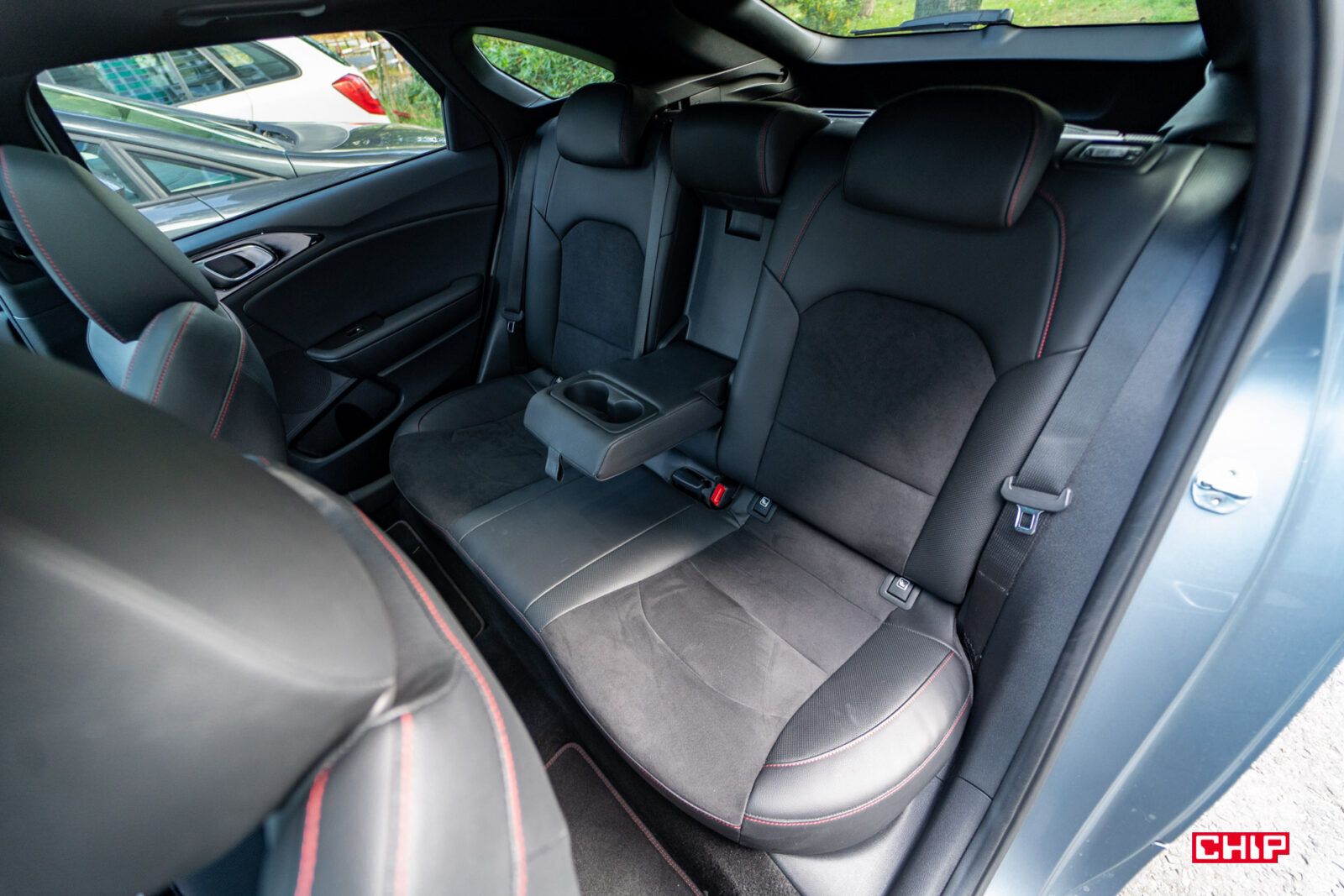 ProCeed w wersji GT jest wyposażony w sportowe fotele. Nie skrajnie sportowe, więc spokojnie, nie są straszne w długich trasach. A wręcz przeciwne, są szalenie wygodne i dobrze trzymają na zakrętach. Niestety nie mogę Wam ich pokazać z tej samej perspektywy co zawsze, bo dosłownie we wszystkich zdjęciach foteli od przodu ostrość poszła… w las. Chyba się wstydziły zapozować. A niepotrzebnie, bo są skórzano-zamszowe i mają efektowne, czerwone przeszycia. Dedykowane dla wariantu GT.