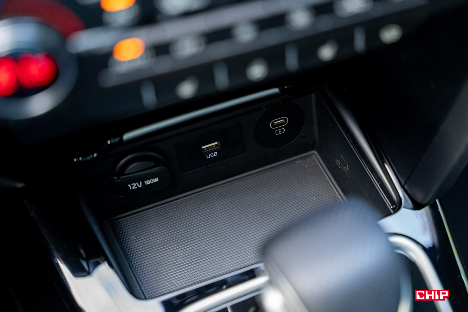 Objawia się to głównie w tylnej części auta. Sufit nad tylną kanapą jest lekko obniżony, ale nie na tyle, aby nie zmieściła się tam osoba mająca nawet 190 cm z hakiem. Przestrzeń na nogi jest wystarczająca. Przy 183 cm wzrostu miałem trochę zapasu przed sobą. Pasażerowie z tyłu mogą mają dostęp do portu USB-C na tunelu środkowym.