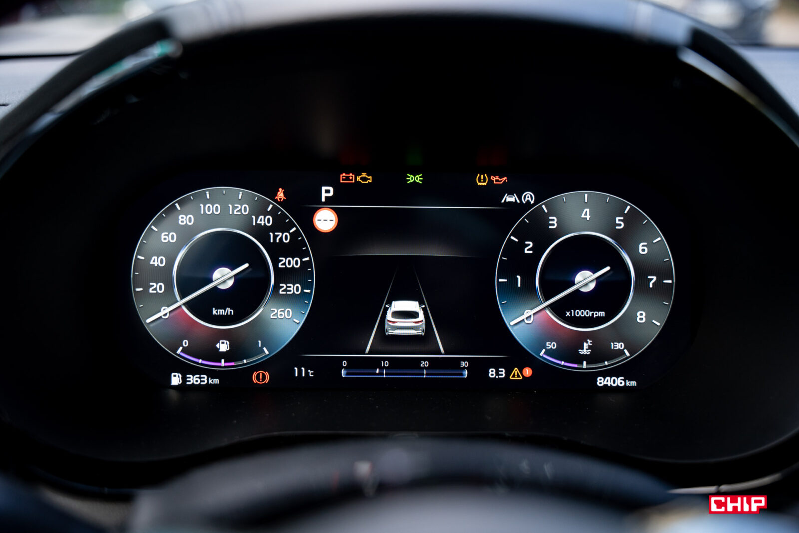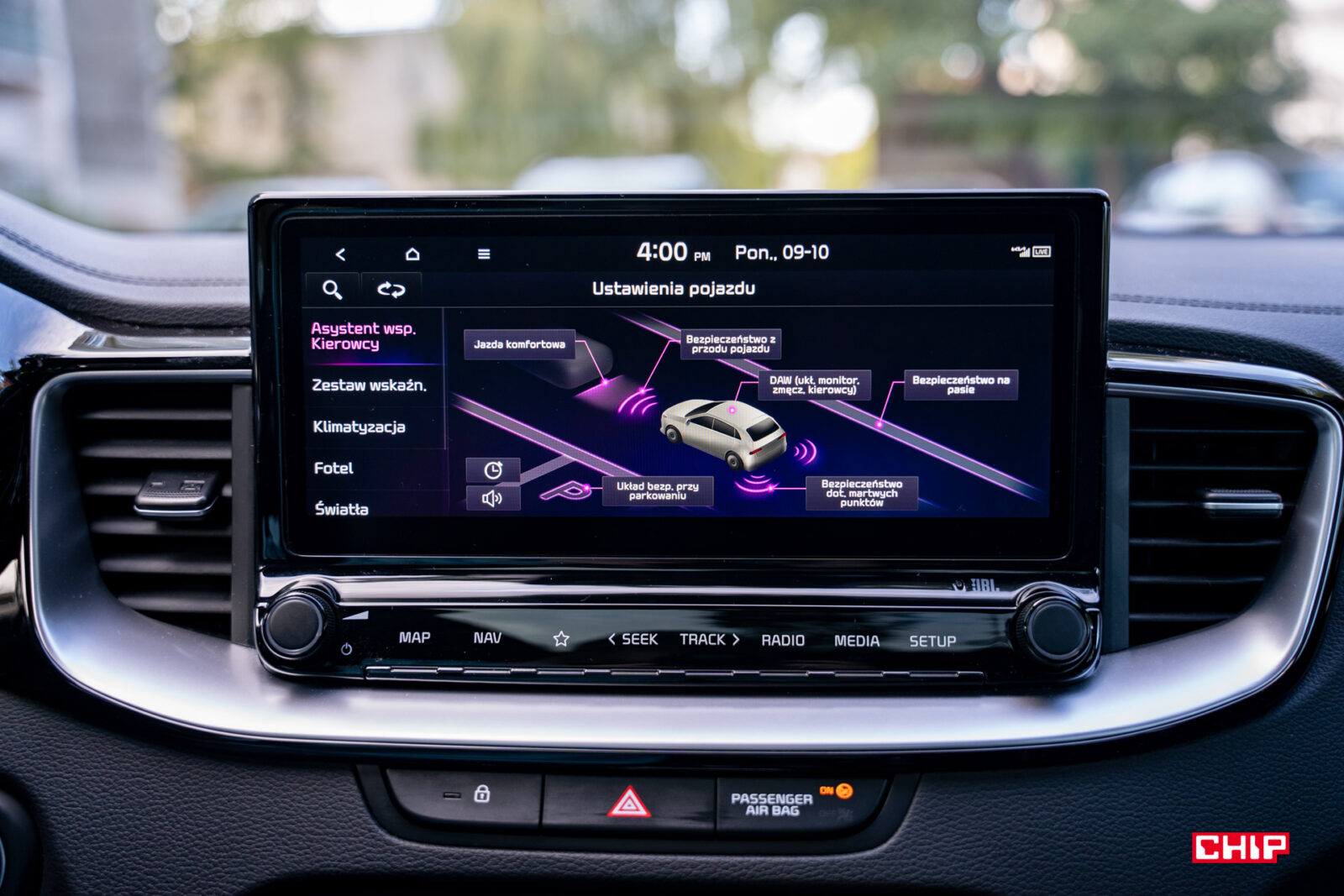 Ekran kierowcy to cześć Pakietu Technologicznego kosztującego 5000 zł. W jego skład wchodzi też system rozpoznawania znaków, Bluetooth z opcją podłączenia dwóch urządzeń, ładowarka indukcyjna oraz nagłośnienie JBL – 8 głośników + subwoofer i wzmacniacz o mocy 320 W. Jak to gra? Chciałoby się powiedzieć, że jak JBL, czyli… rozrywkowo. Dźwięk jest bardzo dynamiczny, z wyraźnym basem, na który audiofile będą kręcić nosem, a wszyscy pozostali powinni być więcej niż zadowoleni.