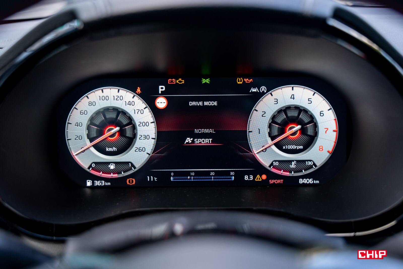 Kia nie jest wyjątkiem i podobnie jak wielu innych producentów postanowiła zepsuć wydech w swoim aucie. Ma on elektronicznie sterowane, aktywne klapy, otwierane po włączeniu trybu Sport. Towarzyszy temu delikatne stuknięcie, słyszalne nawet we wnętrzu auta. W obu trybach jazdy wydech pracuje bardzo ładnie. Mruczy przyjemnie dla ucha i potrafi efektownie strzelić w trybie Sport. Tylko co z tego, skoro są to efekty słyszalne dla osób znajdujących się na zewnątrz, a nie wewnątrz auta?