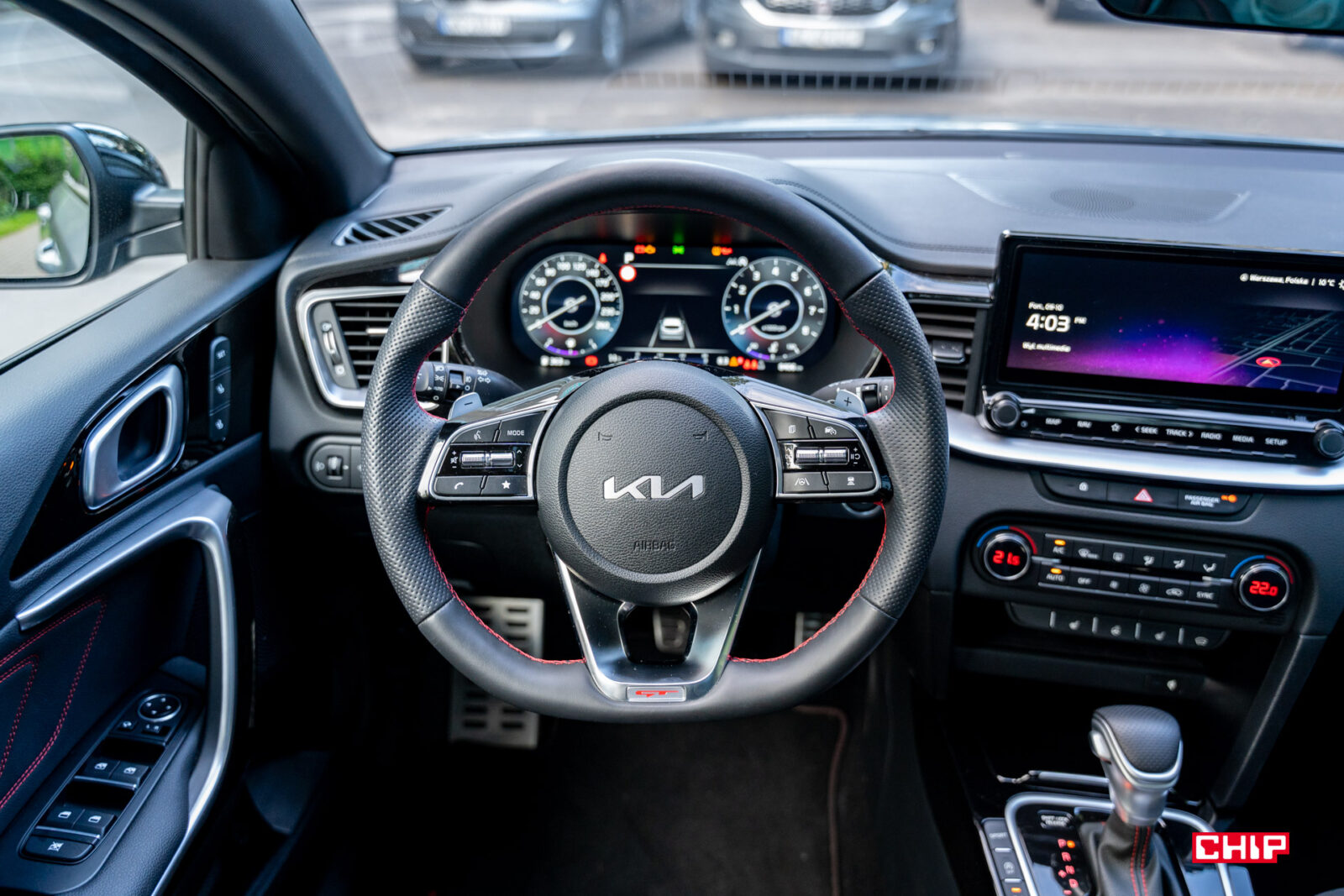ProCeed GT jest dostępny w jednej konfiguracji – silnik o którym pisałam wcześniej + dwusprzęgłowa automatyczna skrzynia biegów z możliwością sekwencyjnej zmiany przełożeń za pomocą łopatek przy kierownicy. Kosztuje to 142 900 zł. Zastanawiałam się, dlaczego widzę ich tak dużo na drogach. Po sprawdzeniu cennika, przestałam się dziwić. 142 900 zł za nówkę sztukę z salonu, w 2023 roku, w dodatku tak fajne auto…