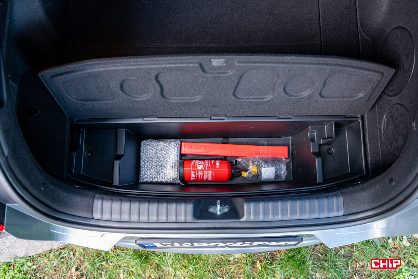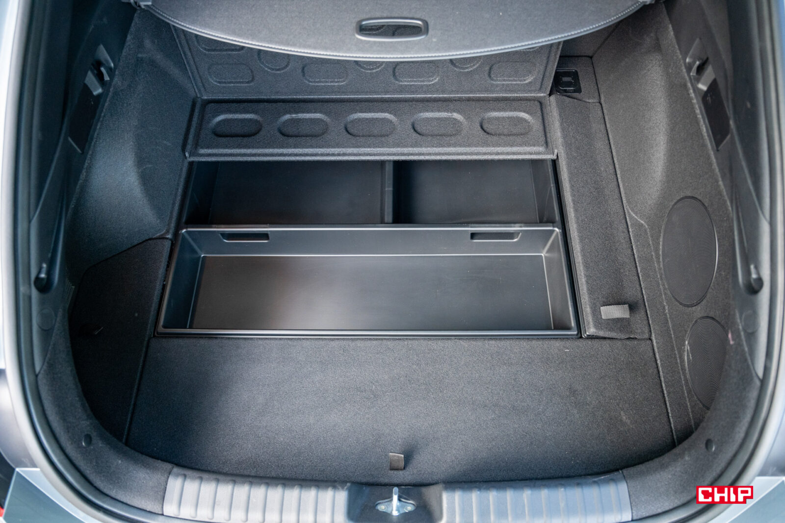 Bagażnik ma pojemność 594 litry i chyba dosłownie każdy na jego widok powie – gdzie?! Bagażnik jest długi, ale bardzo płytki i ma zaskakująco wysoko podniesioną podłogę. Pod nią znajdziemy masę schowków i jeśli komuś odpowiadają w takiej formie to nic tylko używać. Jeśli jednak chcecie mieć pod ręką więcej miejsca ogółem, można je wymontować i cieszyć się głębszym bagażnikiem.