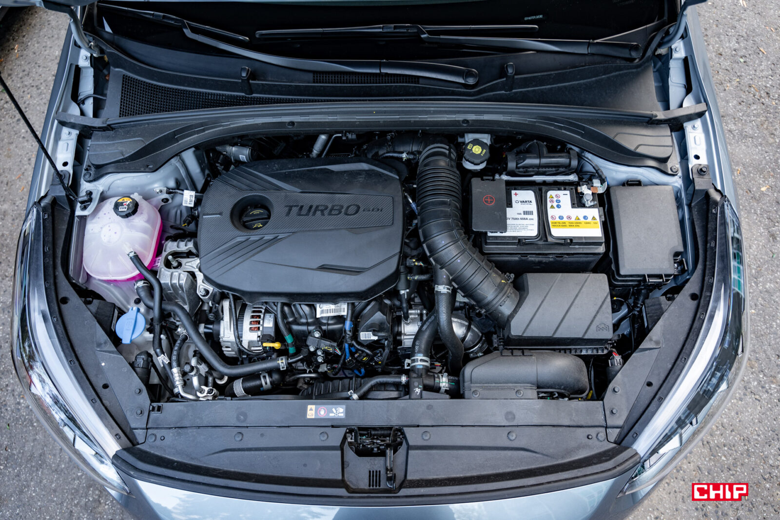 Skoro wspomniałam o przyspieszeniu, zatrzymajmy się na chwilę przy silniku. Mamy tutaj turbodoładowaną jednostkę benzynową o pojemności 1,6 l, maksymalnej mocy 204 Km (6 000 obr./min.) i 265 Nm momentu obrotowego (1 500 – 4 500 obr./min.). Przyspieszenie 0-100 km/h już znacie, natomiast przyspieszenie 80-120 km/h zajmuje naszemu koreańskiemu kombi 5,0 s.