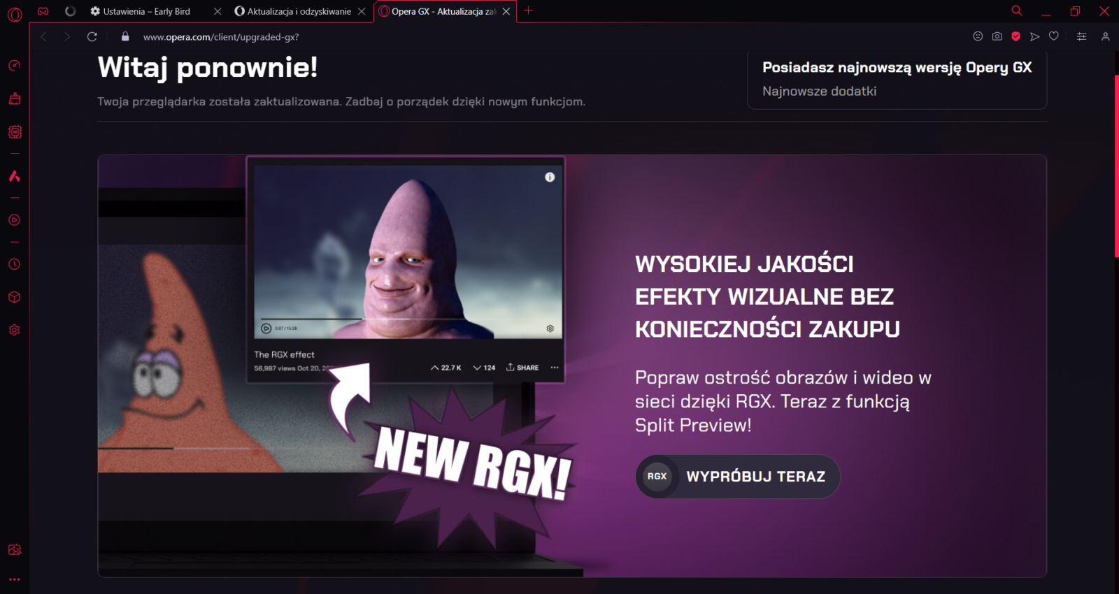 W sytuacji, gdy ceny sprzętu gwałtownie rosną, a usługi strumieniowego przesyłania wideo niemal wymuszają na konsumentach subskrypcje premium, chcieliśmy zapewnić naszym użytkownikom prosty sposób na ulepszenia grafik oraz wideo bez konieczności ponoszenia kosztów czy zobowiązań. RGX zapewnia miły widok dla każdych oczu, nie obciążając przy tym portfela – dodaje Maciej Kocemba, Product Director Opera GX. Warto wspomnieć, że Opera Software ma we Wrocławiu całkiem prężne biuro, którego pracownicy uczestniczą we wdrażaniu nowości dla wszystkich przeglądarek tej norweskiej marki.