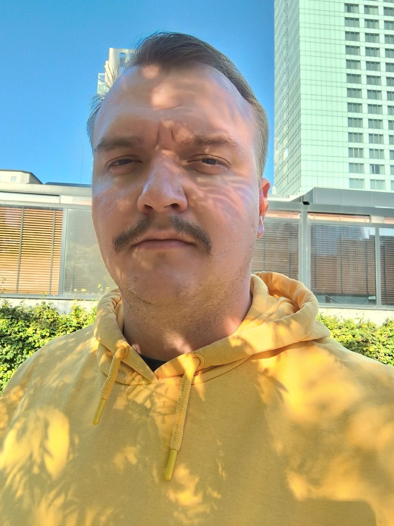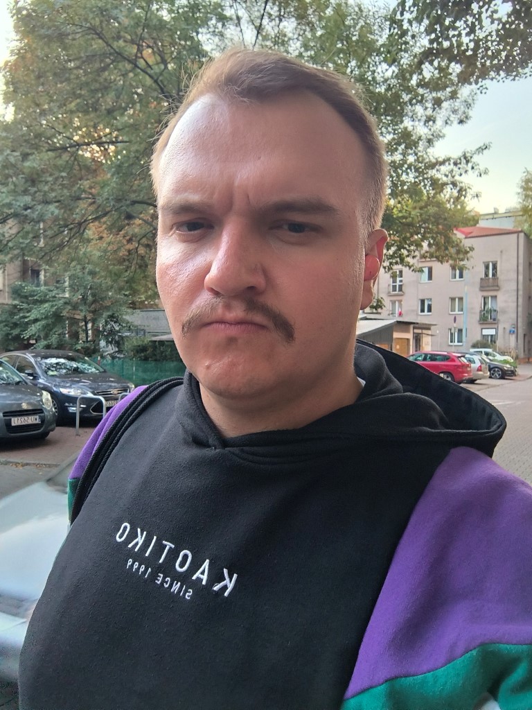 Zdjęcia z przedniego aparatu raczej nie zostaną zapamiętane przeze mnie na długo. Wiele z nich nie było zbyt ostrych, a ponadto w trybie portretowym zauważyłem spadek ogólnej szczegółowości zdjęcia (bez używania dodatkowych filtrów). Poza tym są one prawidłowe – zazwyczaj na twarzy widać sporo detali (choć tu więcej daje Nothing Phone (2)), a kolorystyka cery na zdjęciach w znacznej mierze pokrywa się z rzeczywistością. Rozmycie dodawane w trybie portretowym mogłoby być lepsze, ale w większości przypadków nie dostrzeżemy niewielkich doskonałości w okolicy linii włosów.