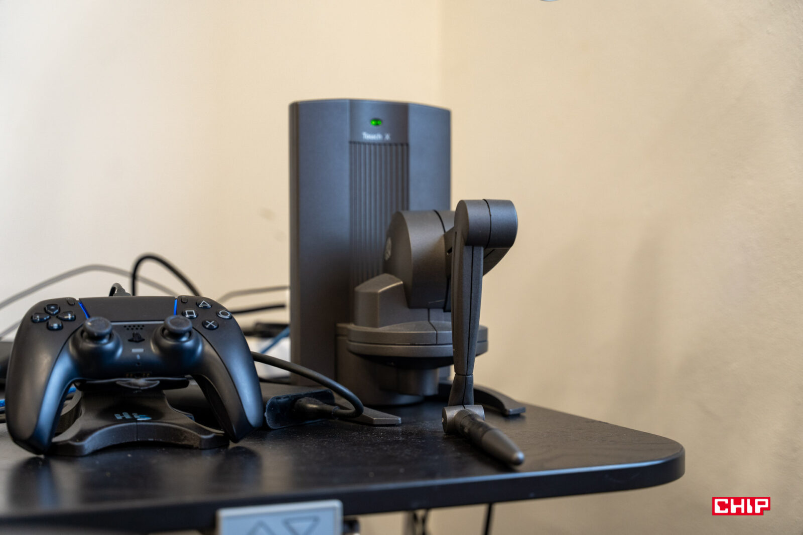 Ramieniem robota, a także jego chwytakiem na końcu ramienia sterujemy zdalnie za pomocą specjalnie stworzonego manipulatora i… zwykłego pada do gier (do chwytania). Dzisiaj jest to bardziej zaawansowany DualSens dający opór na triggerach, ale jak widziałem go pierwszy raz, wykorzystywał legendarnego Logitecha F310.