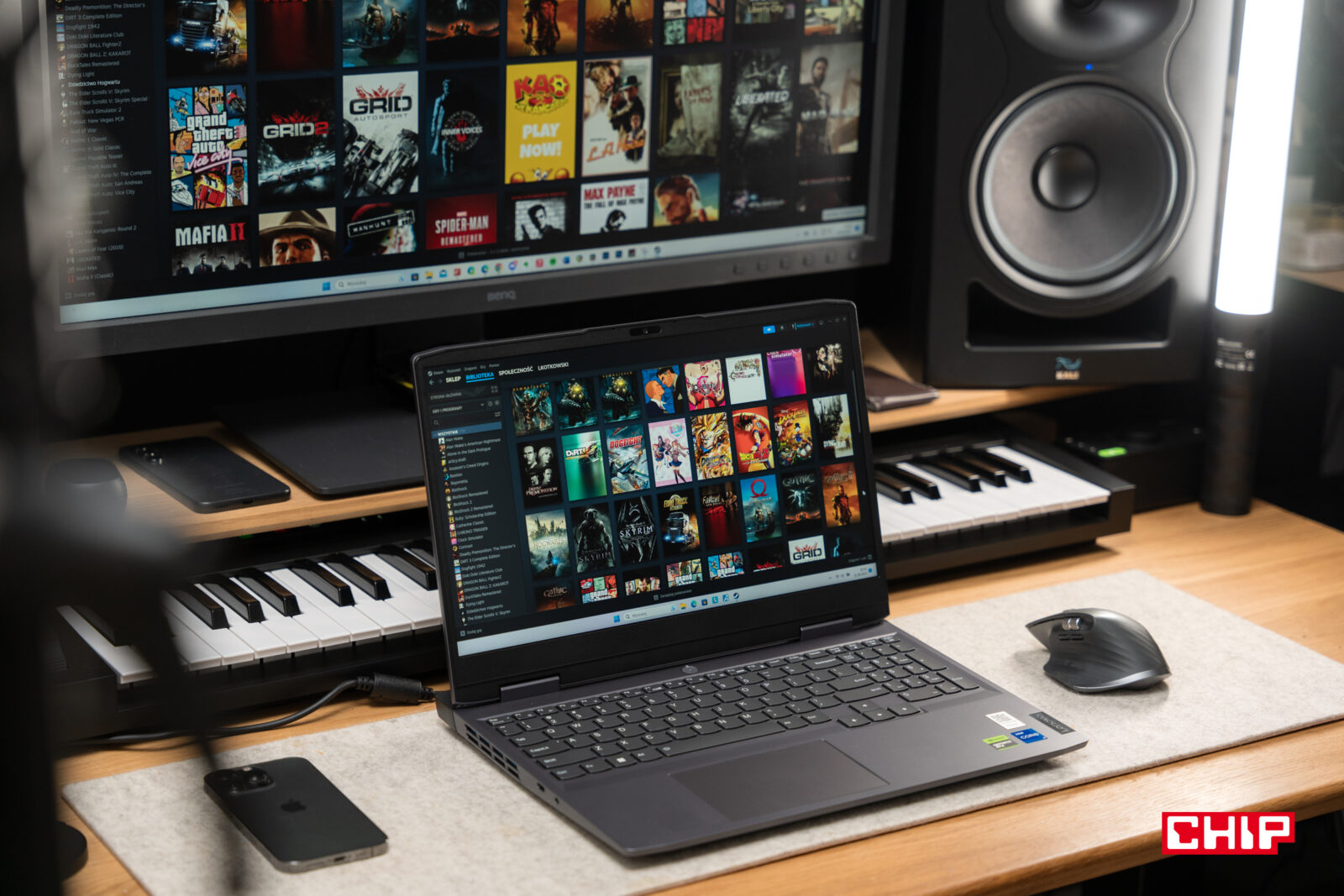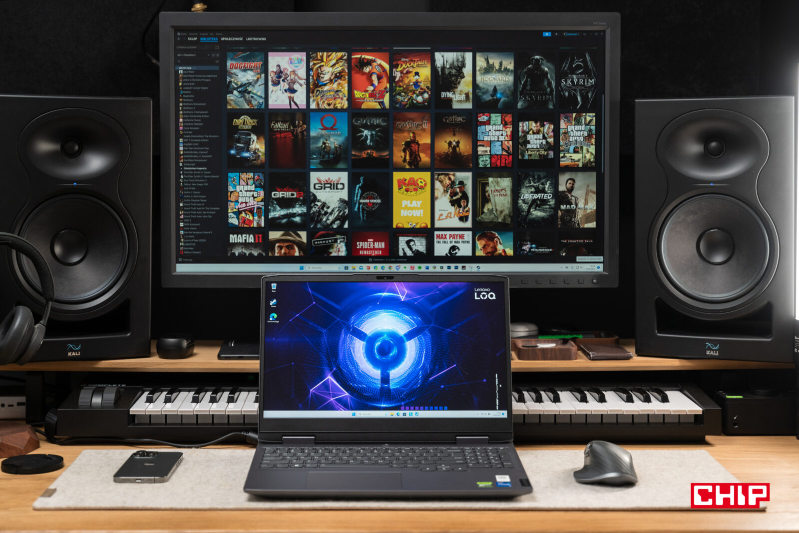 Tyle, jeśli chodzi o nieprzesadnie miarodajne, syntetyczne benchmarki. A jak Lenovo LOQ 15 sprawuje się na co dzień? Mówiąc wprost – świetnie… o ile trzymamy się gier. Jako że na co dzień param się fotografią i montażem wideo, w pierwszej kolejności sprawdziłem go właśnie w tych zastosowaniach. Do zdjęć ten laptop nadaje się znakomicie, pod warunkiem, że podłączymy go do zewnętrznego monitora, bo wbudowany wyświetlacz absolutnie nie nadaje się do pracy z kolorem. Jeśli jednak chodzi o moc obliczeniową, to bez problemu poradził sobie z biblioteką 100+ RAW-ów 61 Mpix z Sony A7RV. Nie miał też problemu z wykorzystaniem inteligentnych masek w Lightroomie ani content aware fill w Photoshopie, gdzie działał bez wyraźnych opóźnień.